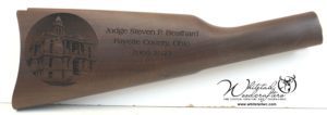 Here’s what Corey had to say about his recent gun stock engraving, “Whitetail Woodcrafters took an ordinary gun that was sentimental and made it a family heirloom. The laser engraving and stock refinishing is flawless! I could not imagine anything better. Thank you Whitetail Woodcrafters.”