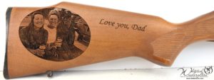 In addition, let’s hear what Carmen had to say about her recent gun stock customization! Carmen said, “Myself and my dad were so happy with the gunstock we had made as a gift. It included a picture of my dad, sister, and I (picture taken on an iPhone). The detail was incredible and perfect. They took great care of the stock and sent it back in the same condition as it was sent in. They were also super friendly and informative. I highly recommend!”