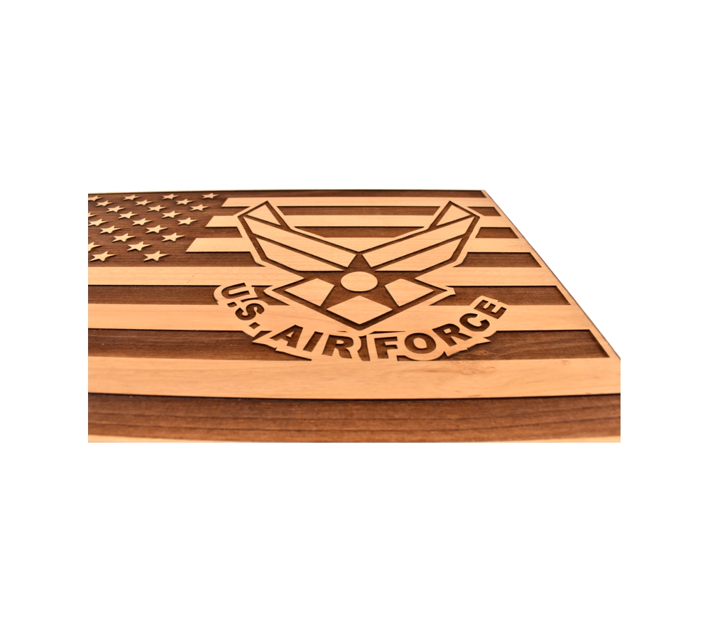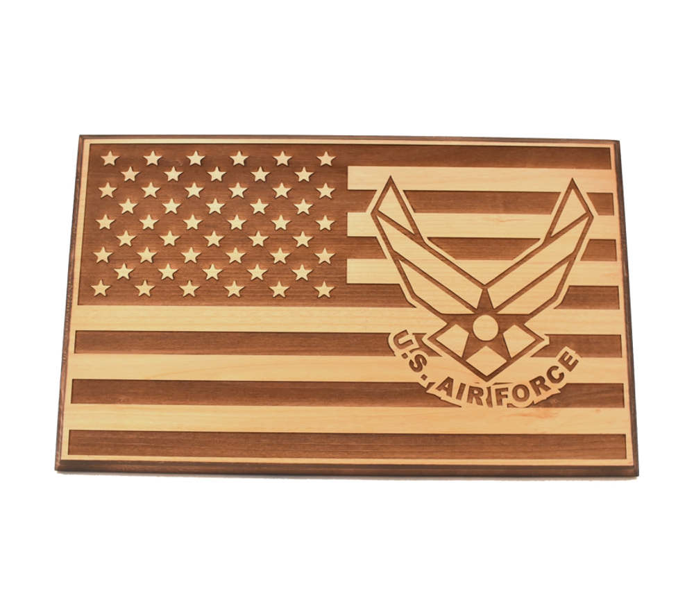 Show your family’s military pride with an engraved military sign from Whitetail Woodcrafters. Featuring a detailed engraving of the American Flag and your chosen armed forces emblem on solid alder wood, this wood military plaque is the perfect way to show your support for the veteran or active duty serviceman or servicewoman in your life, or to honor a loved one who didn’t make it back home.