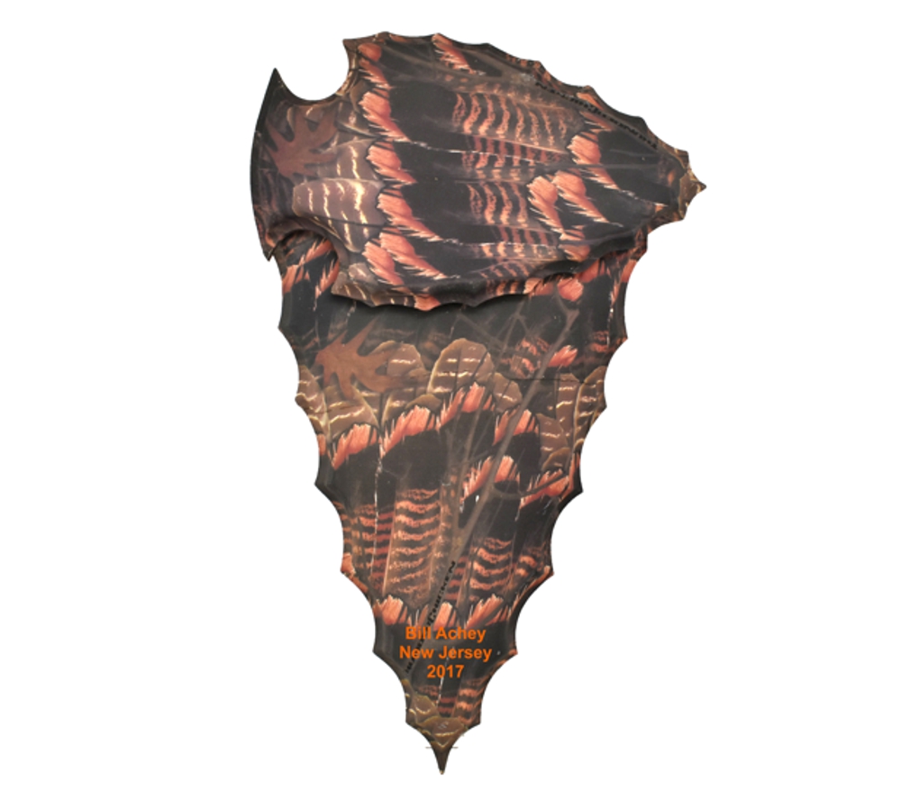 Note: Our 2 piece turkey mounting plaque consists of a front and back piece with the fan and beard attached between them. The back piece is notched out to allow room for the fan and there is a notch cut in the back of the front piece for you to set the beard into. A heavy duty metal hanger is attached to the back for easy wall hanging. Turkey fan and beard not included. We will choose the font color that will be most visible on the camo pattern you have selected.