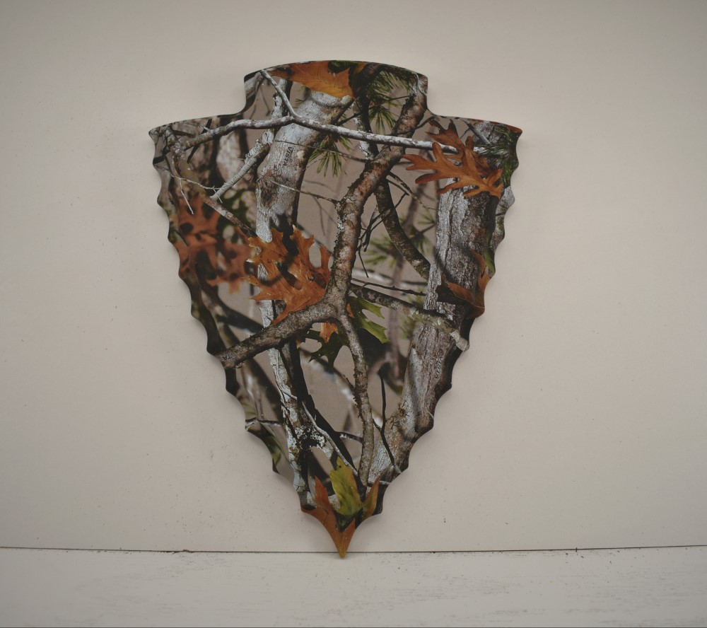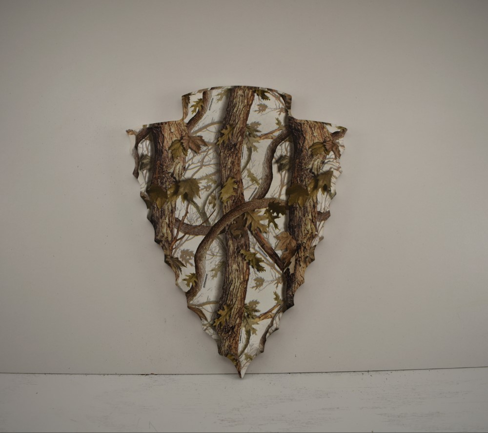 Create a unique taxidermy display for your antlers with the arrowhead antler taxidermy plaque from Whitetail Woodcrafters. This camo taxidermy mounting plaque is handcrafted in our shop and then hydro dipped with a detailed camo pattern that will last forever.