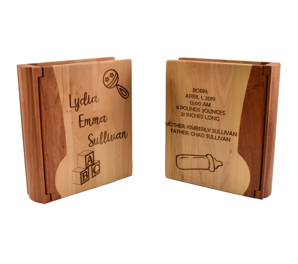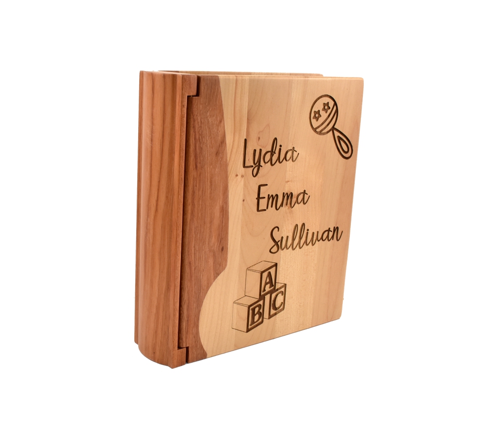 A personalized photo album is the perfect way to display all the special photos of your baby growing up. Crafted of solid maple and rosewood, our engraved picture albums will serve as a keepsake of your memories for years to come. Whether you give it as a gift or purchase one for your own child, a custom engraved wooden photo album is sure to be treasured for a lifetime.