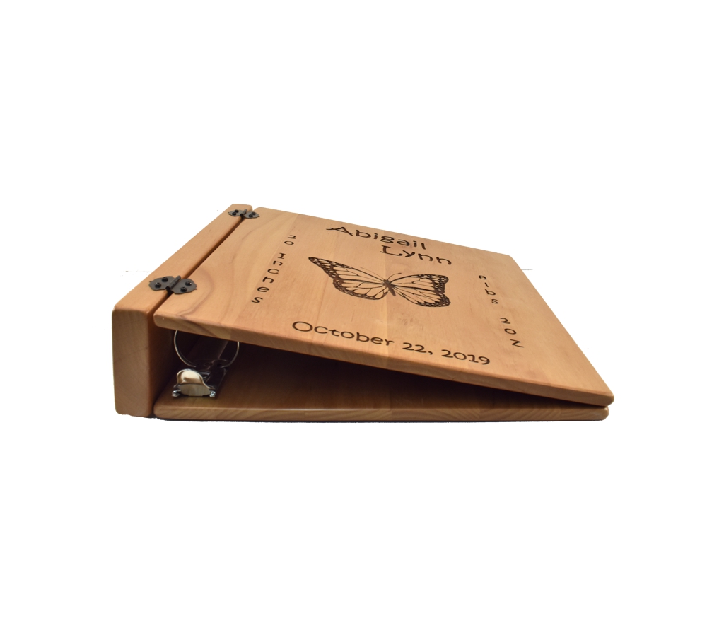 Having a baby is one of the most joyous occasions in life. What better way to remember that special time than with a personalized photo album to protect pictures of the most precious memories of your child’s life. Crafted of solid maple, our engraved picture albums will serve as a keepsake of these memories. All of our custom engraved wooden photo albums feature a standard 3 ring binder insert that can hold any 8.5″ x 11″ page. This allows you to make a custom album, scrapbook, or a mixture of these pages for a completely unique display. We have a variety of sizes of page inserts available for purchase with your album as well.