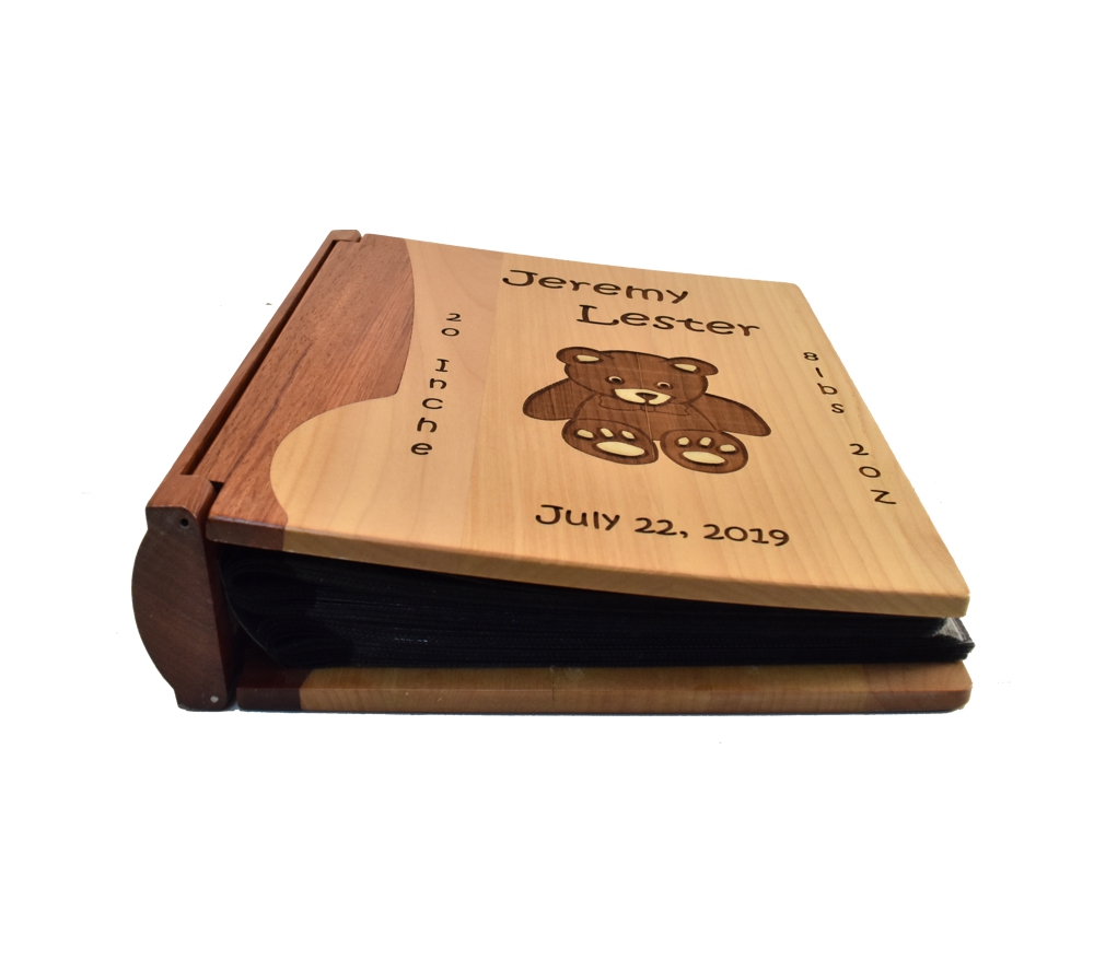 Having a baby is one of the most joyous occasions in life. What better way to remember that special time than with a personalized photo album to protect pictures of the most precious memories of your child’s life. Crafted of solid maple and rosewood, our engraved picture albums will serve as a keepsake of these memories. Whether you give it as a gift or purchase one for your own child, a custom engraved wooden photo album is sure to be treasured for a lifetime.