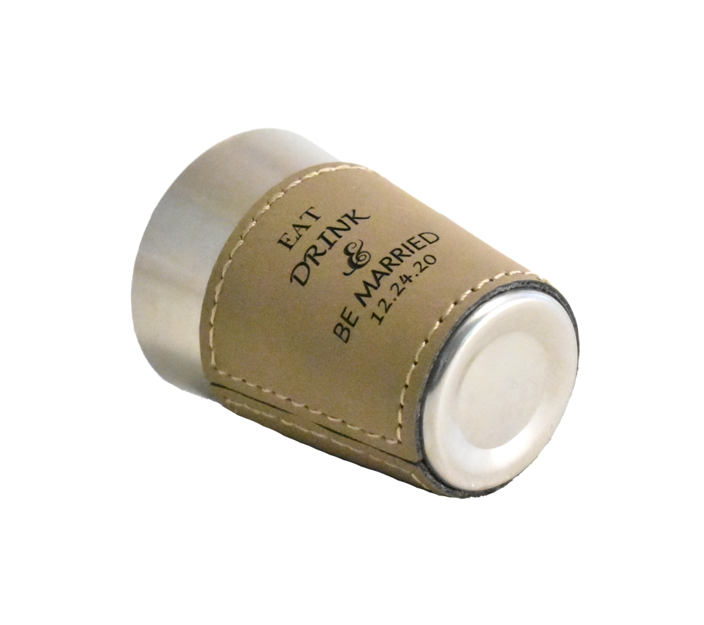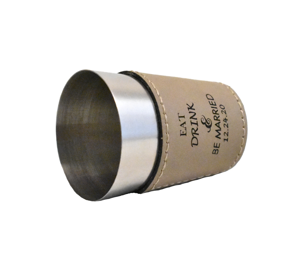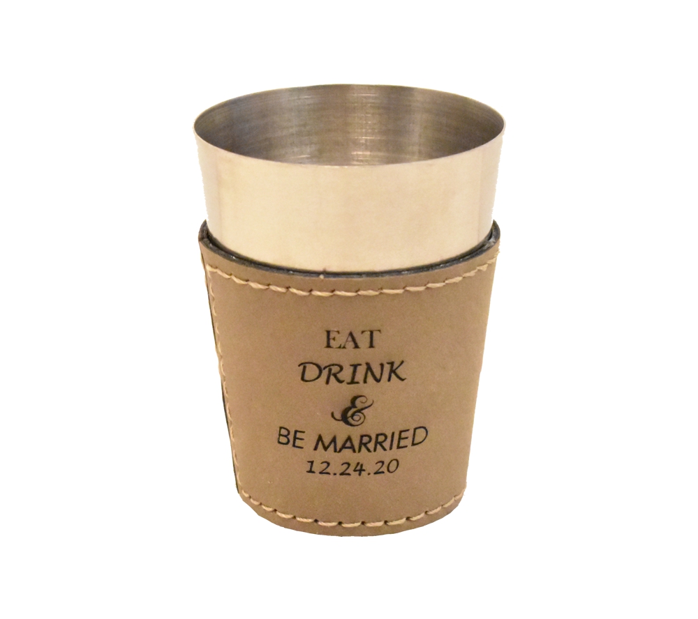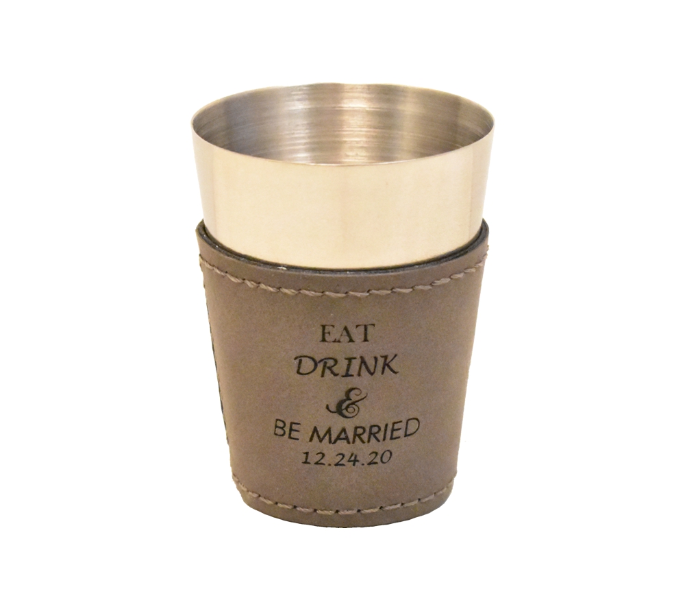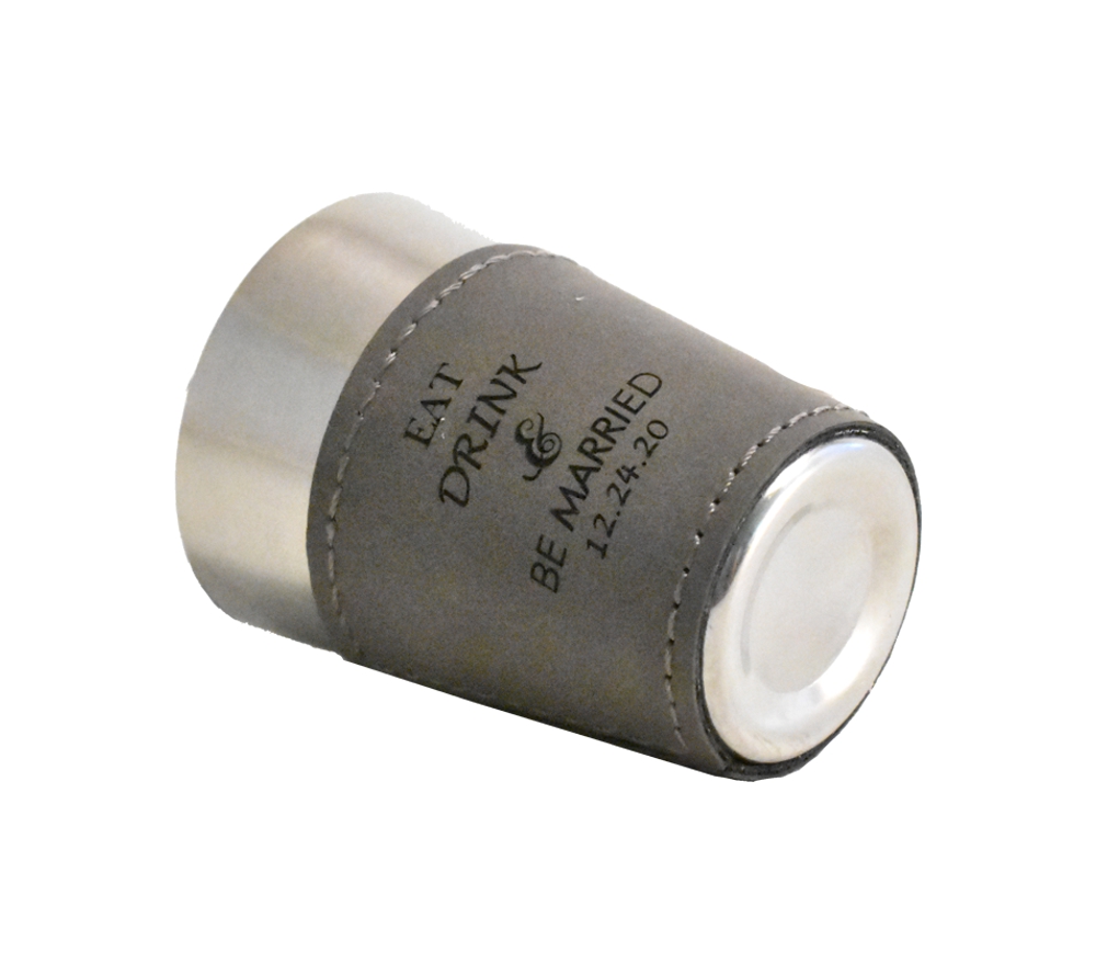 Give a fun wedding favor that can be incorporated into your reception with a custom engraved leather shot glass from Whitetail Woodcrafters. Available in a variety of leather colors, it is easy to create a great personalized thank you for your guests that also coordinates with your wedding decor. Purchase one as a sample, or buy them in bulk to receive our preset discounted rate.