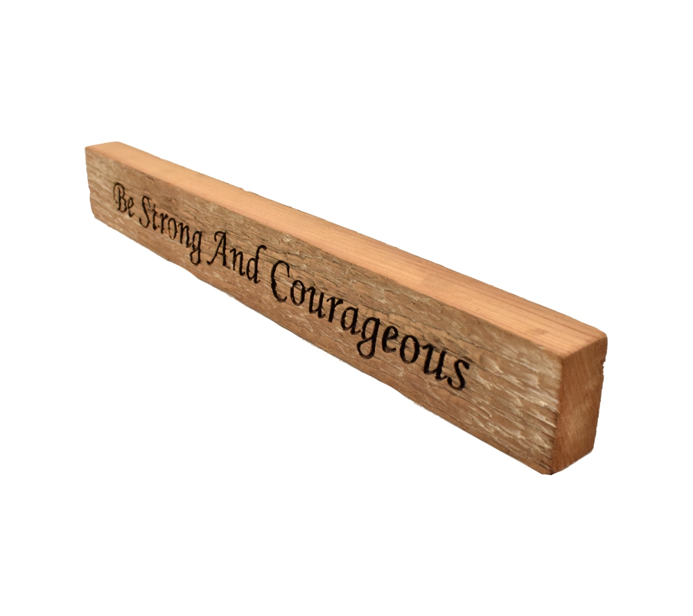 Our wood block signs are made from reclaimed wood from an over 100 year old barn and will look great in any home or cabin. Our “Be Strong and Courageous” laser engraved wood block is a great encouragement for whenever you’re going through a tough time.