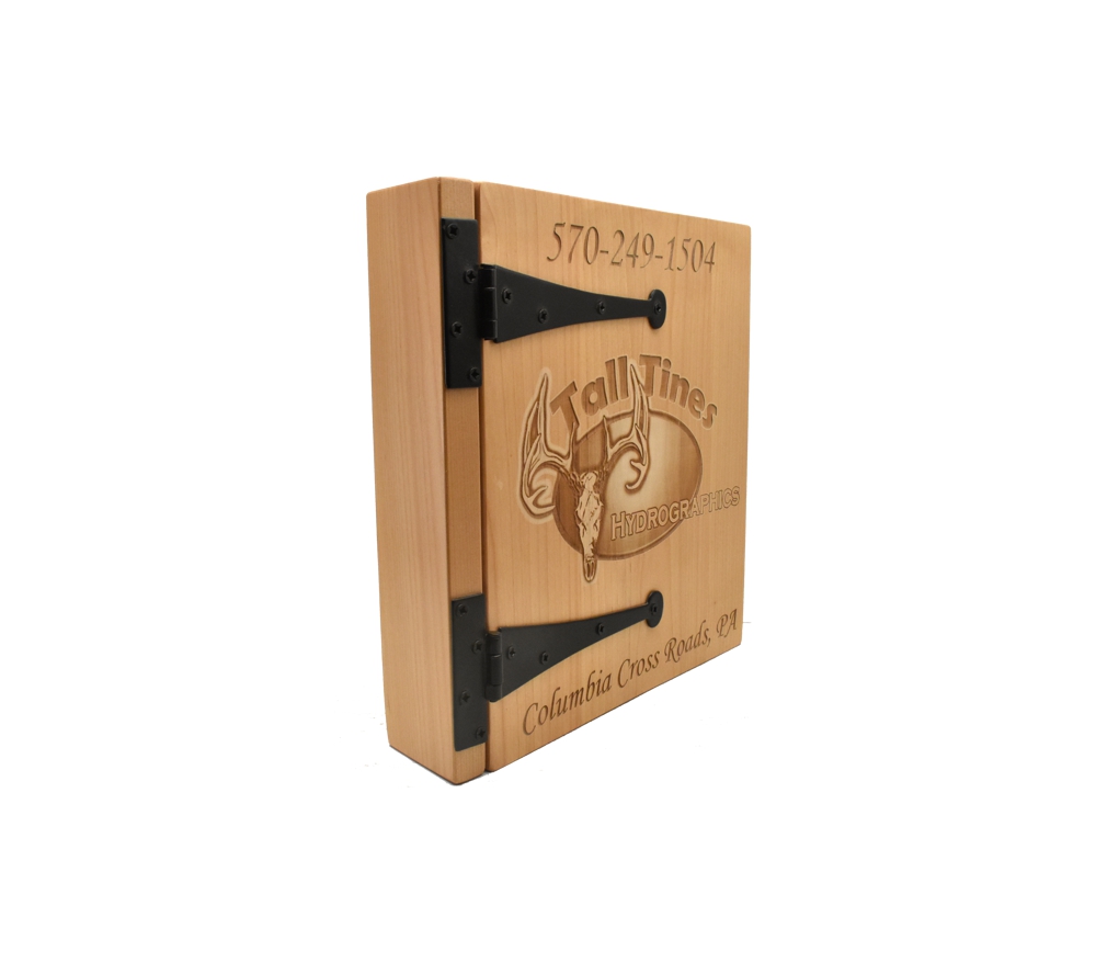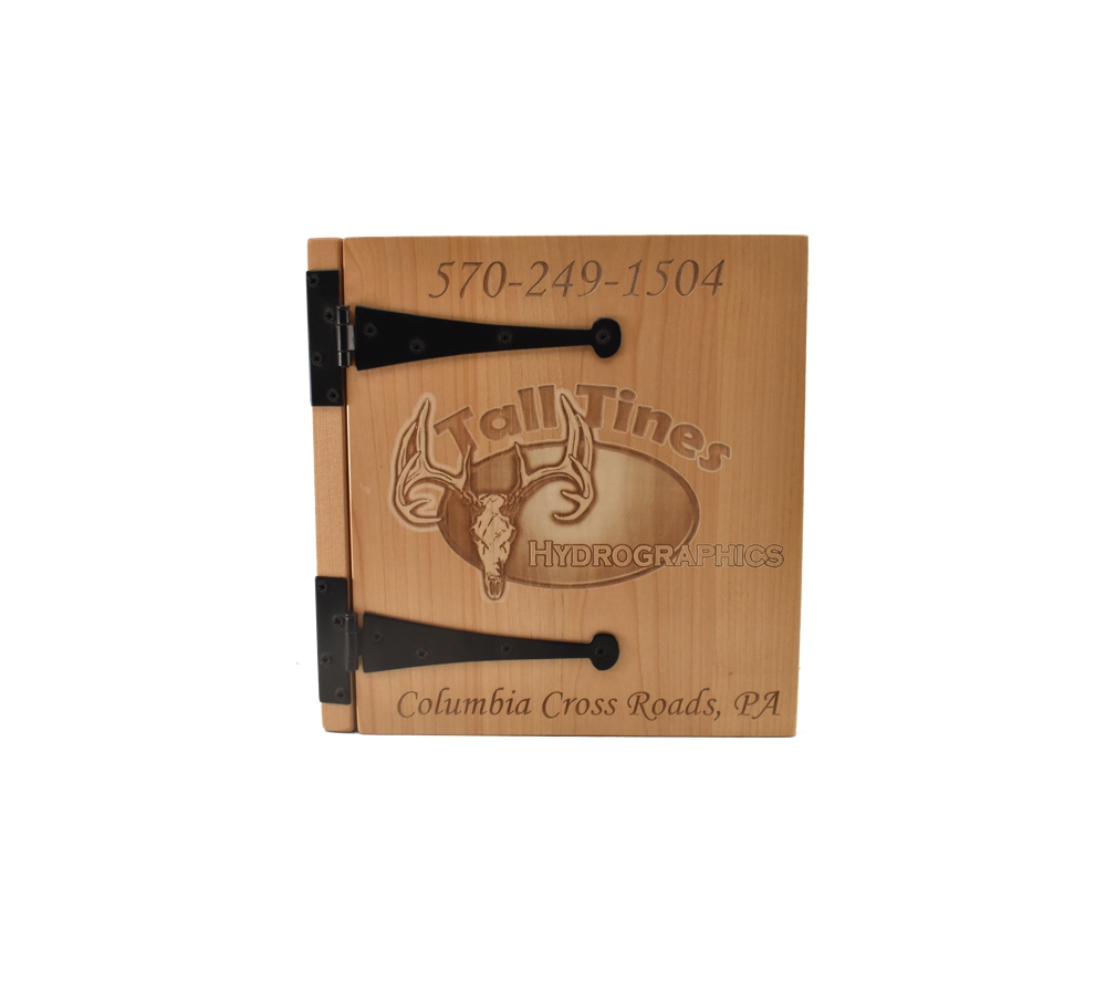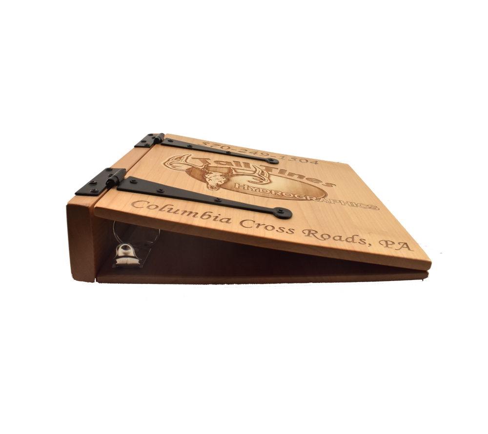 Create a custom engraved album to showcase what your business does with a personalized photo album from Whitetail Woodcrafters. All of our custom engraved wooden photo albums feature a standard 3 ring binder insert that can hold any 8.5″ x 11″ page. This allows you to make a custom photo album, guestbook, or a mixture of these pages for a completely unique display. We have a variety of sizes of page inserts available for purchase with your album as well.
