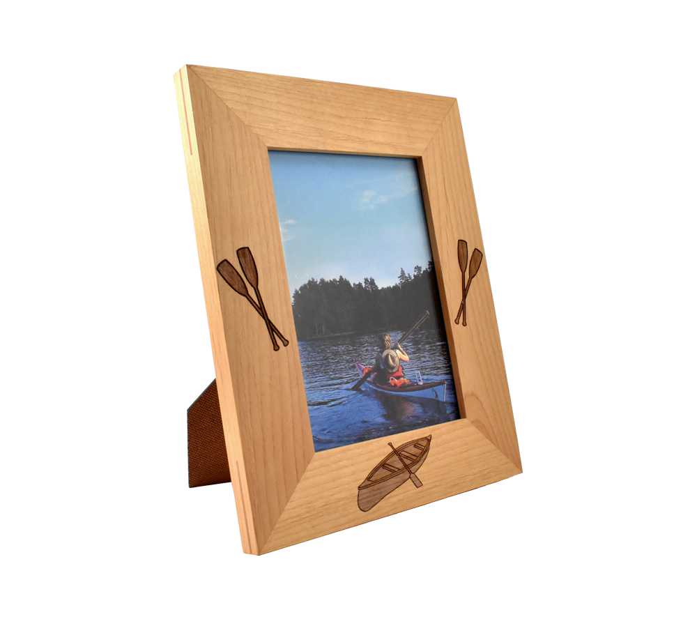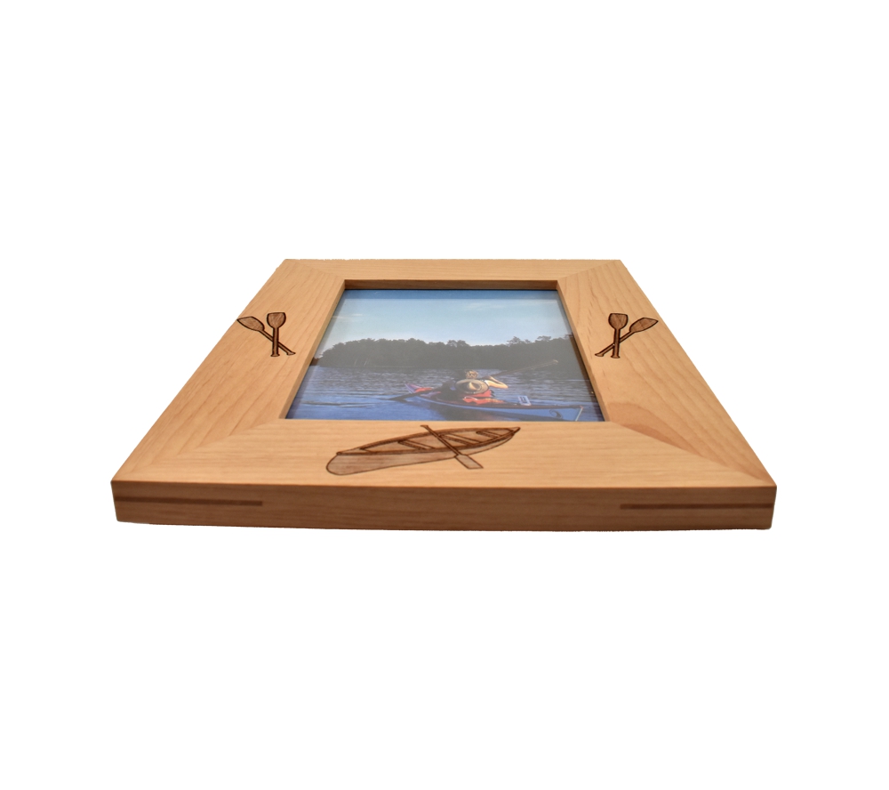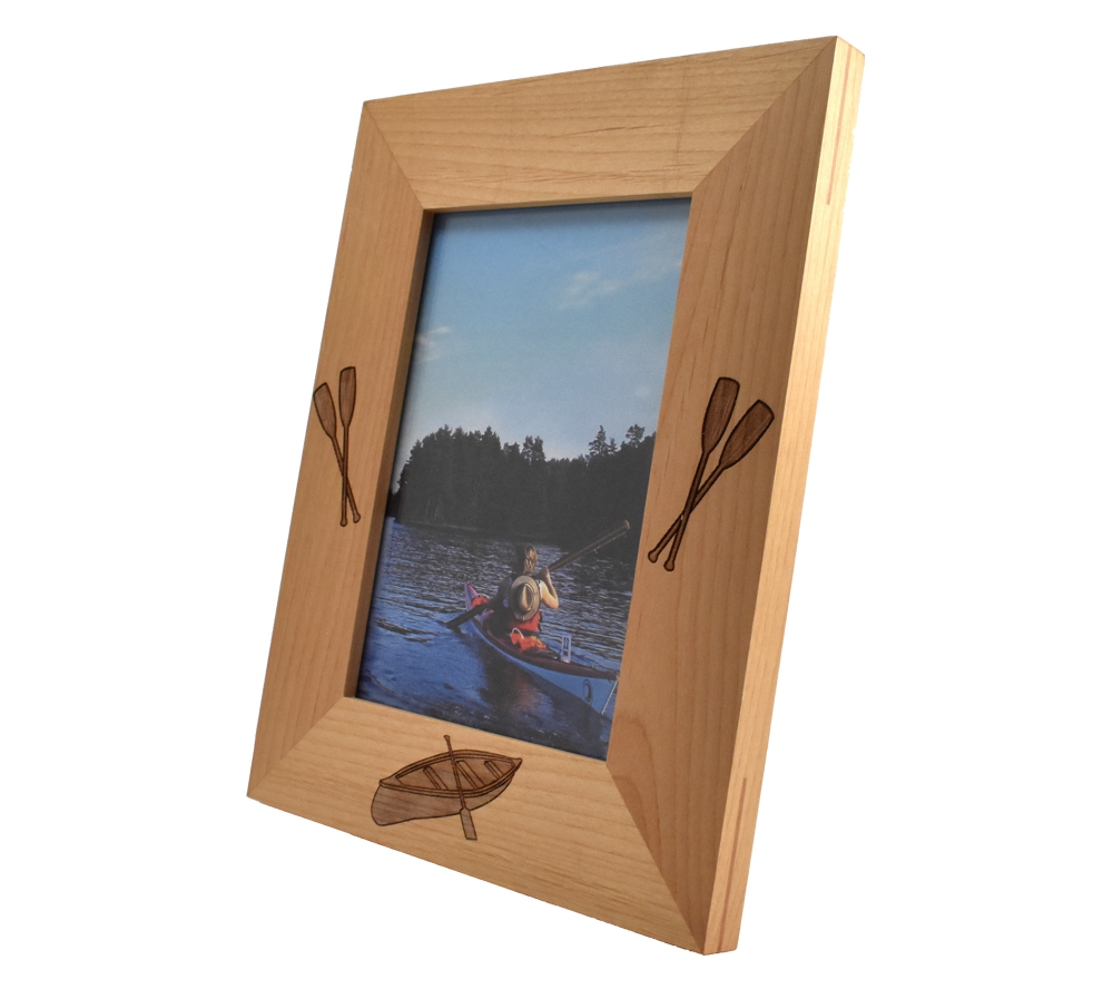 Display all of your fun times shared on the water with a canoe family picture frame from Whitetail Woodcrafters. Handcrafted from solid alder wood, this laser engraved wood frame is built to last a lifetime and will become a treasured family keepsake that you can display in your home, office, cabin, or display room. Our engraved wooden picture frames are available to hold a 4×6, 5×7, or 8×10 inch photo and can be hung on the wall or set on a flat surface using the attached stand.