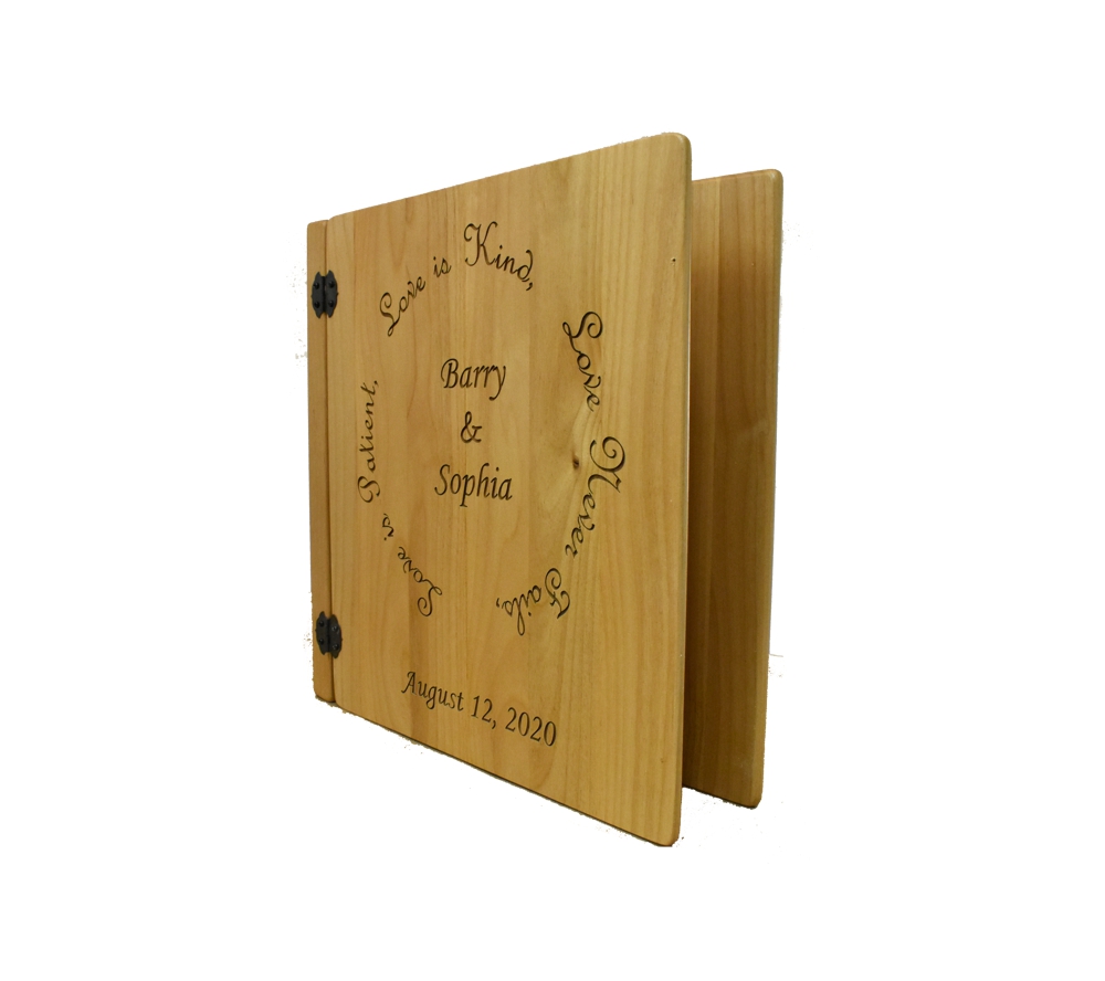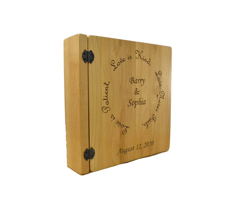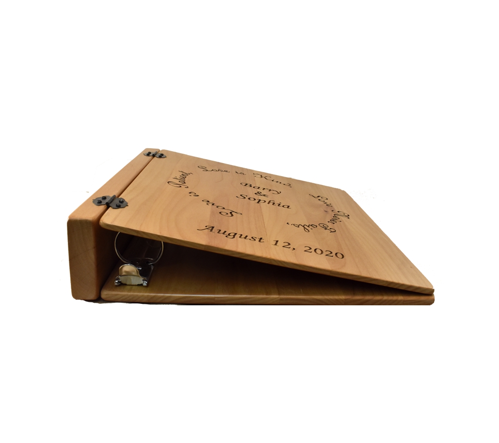 This beautifully elegant photo album is the perfect personalized wood gift for weddings and anniversaries. Crafted of solid maple, our small personalized photo albums will store all of your most precious memories and become the centerpiece of any room. All of our custom engraved wooden photo albums feature a standard 3 ring binder insert that can hold any 8.5″ x 11″ page. This allows you to make a custom album, scrapbook, guestbook, or a mixture of these pages for a completely unique display. We have a variety of sizes of page inserts available for purchase with your album as well.