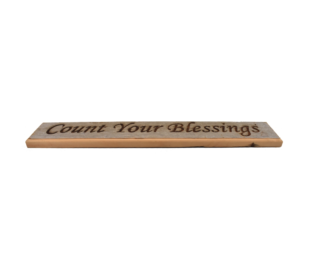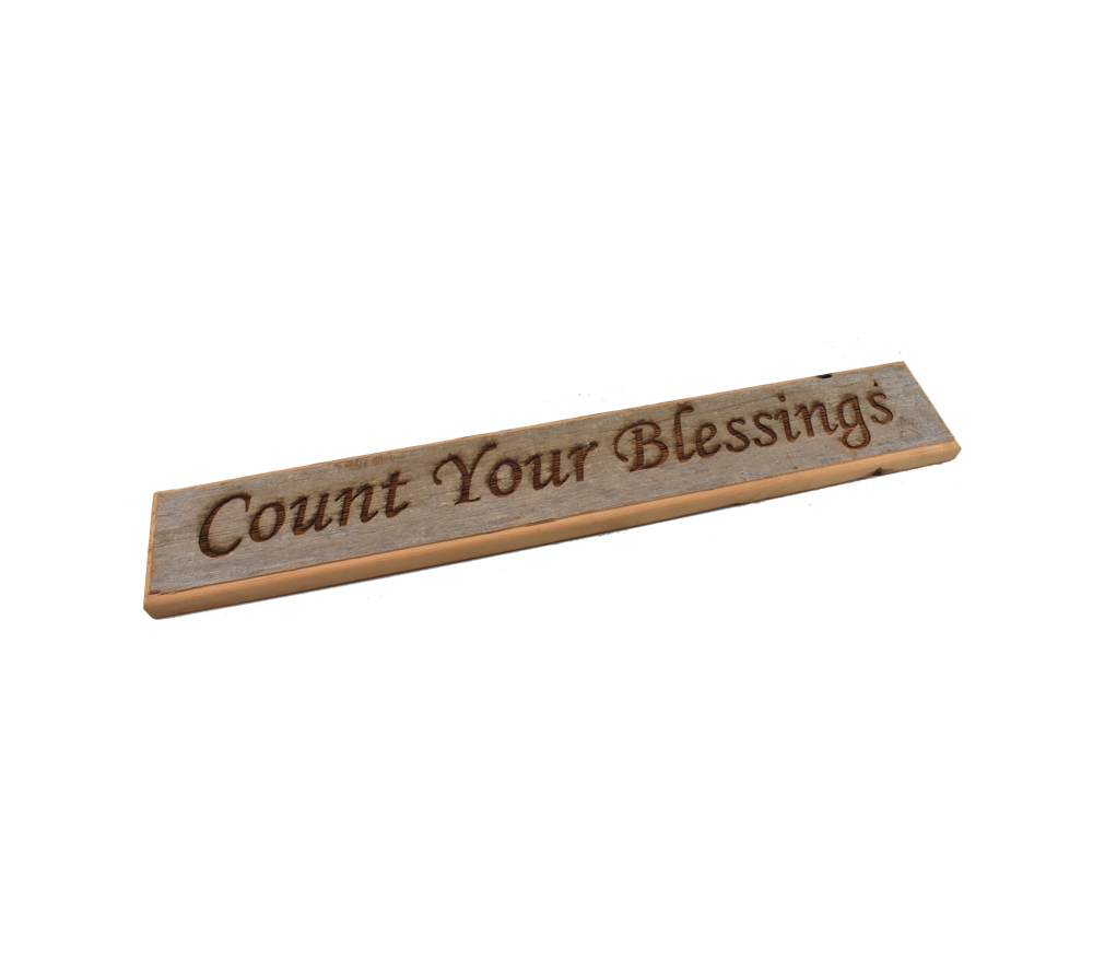 The Count Your Blessings barnwood door topper from Whitetail Woodcrafters is a beautiful handcrafted rustic decoration for your home or cabin. These rustic barnwood signs are made in our shop from barnwood from an over 100 year old barn for a quality and character you won’t find anywhere else. Whether you give this laser engraved sign as a gift or keep it for yourself, it will maintain its beauty for a lifetime.