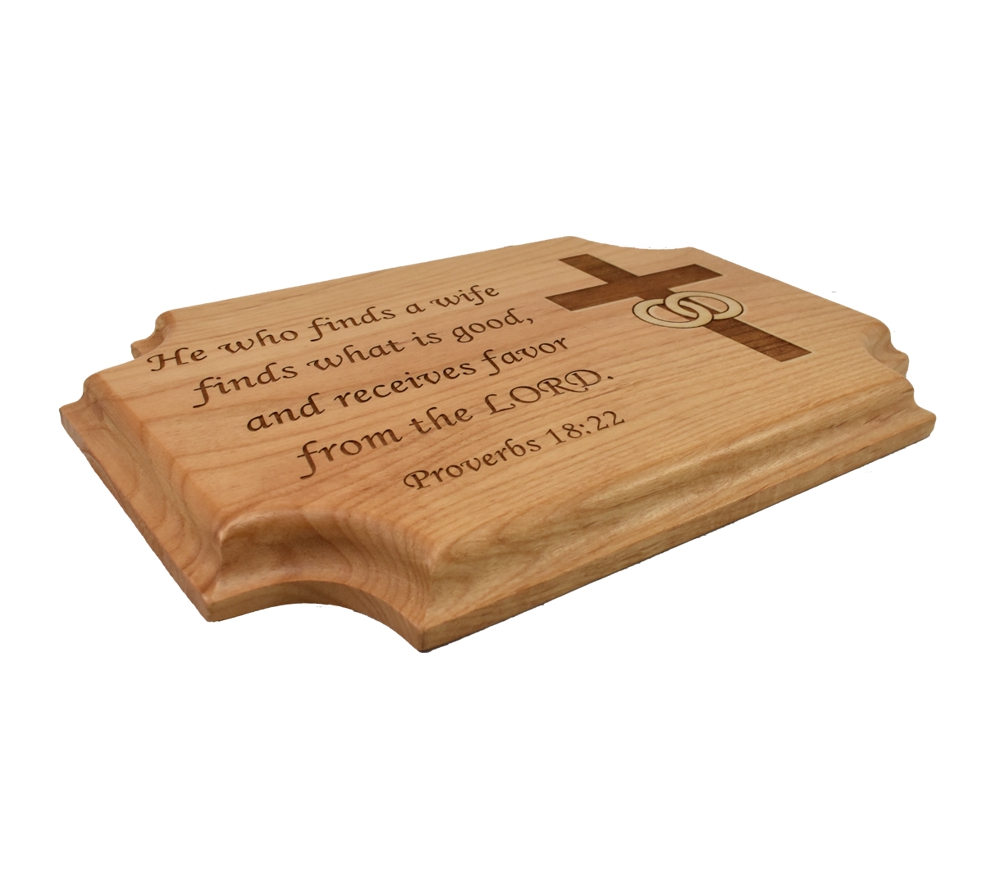 Decorate your home in style with one of our personalized wood plaques. The cut corners of this custom engraved wood plaque create an elegant spin on a simple design and is the perfect style for just about any engraved design. Handcrafted from premium solid hardwood, this custom engraved sign looks great in any home and is extremely popular as a personalized wood gift.