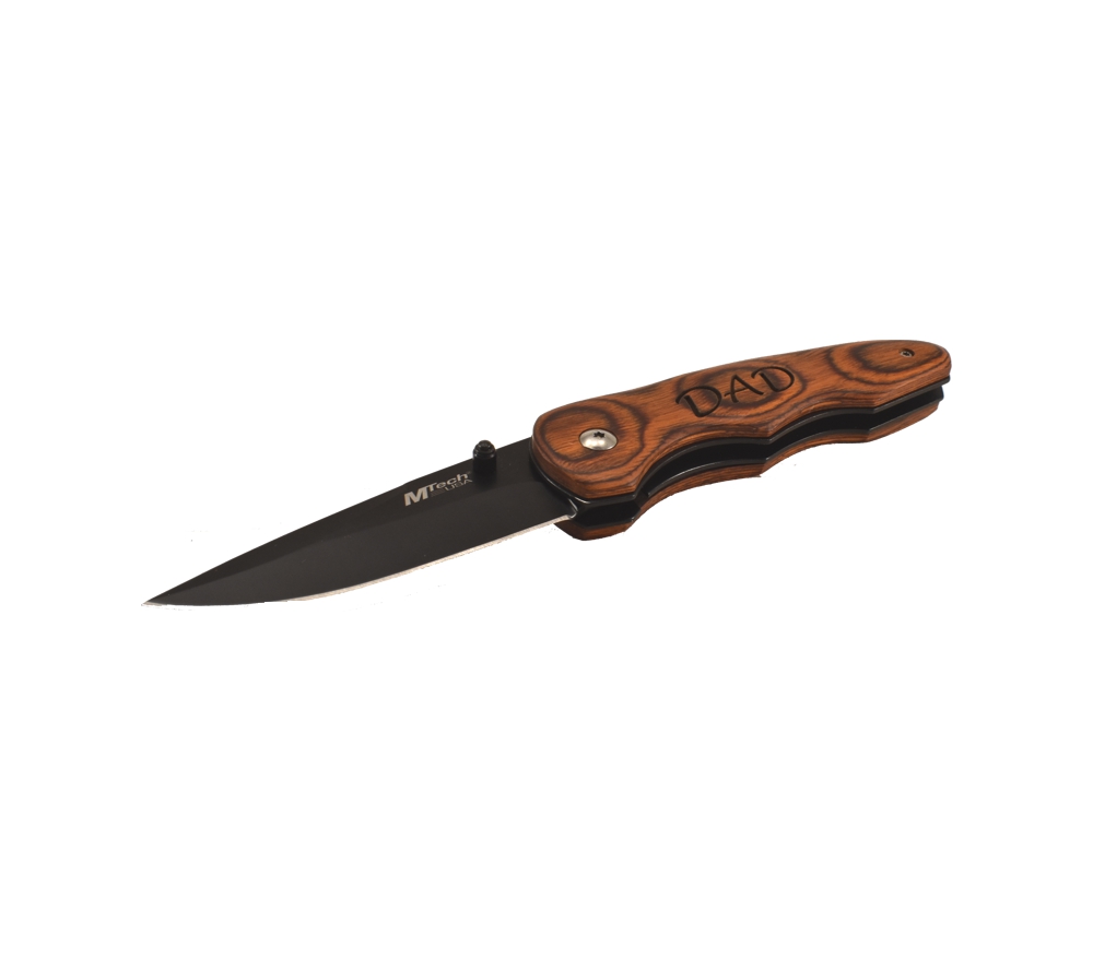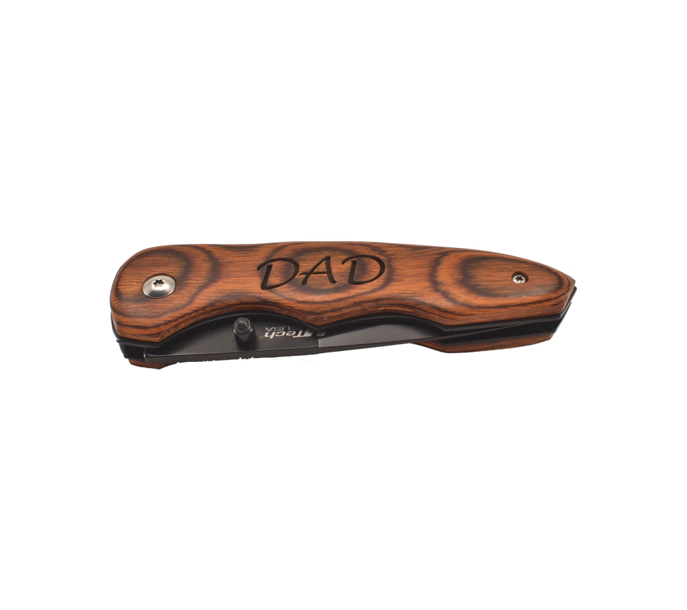 Dad engraved pocket knives from Whitetail Woodcrafters are a gift that will always be used and appreciated. This Dad personalized pocket knife will make a unique gift. This high quality knife features a rosewood handle and a black stainless steel stay-sharp blade.