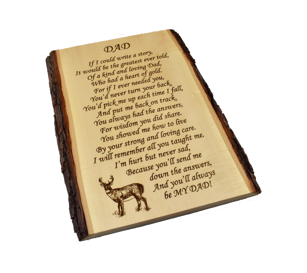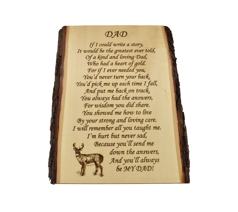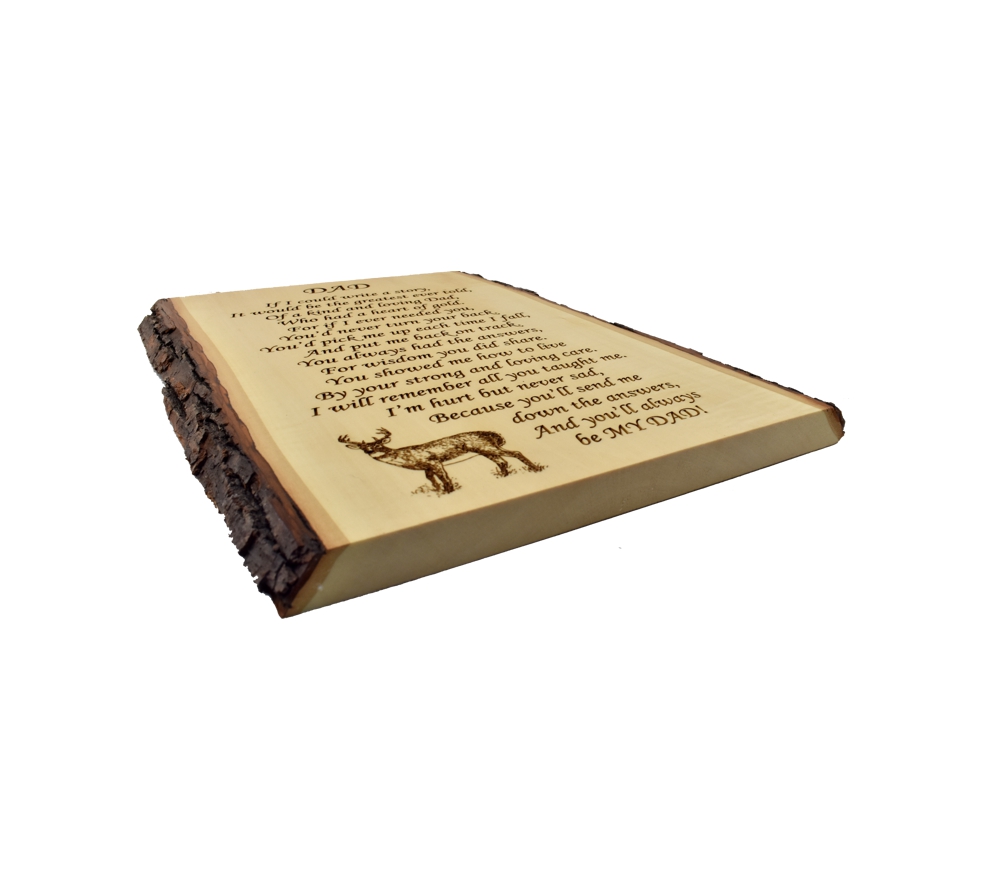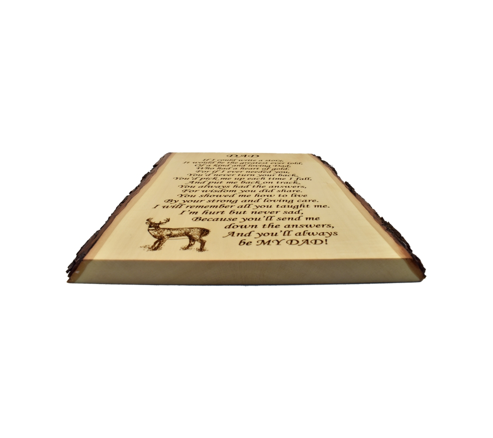 Looking for a unique way to honor the man who has had such an impact in your life? The Dad live edge sign from Whitetail Woodcrafters is a beautiful way to decorate your home or cabin, and makes a great gift in remembrance of someone who changed your life for the better. These rustic signs are handcrafted in our shop from solid basswood for a quality and character you won’t find anywhere else.