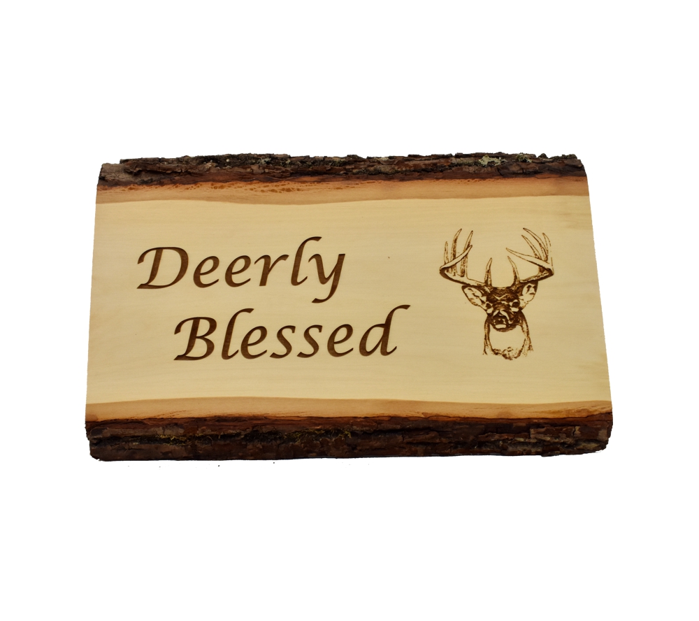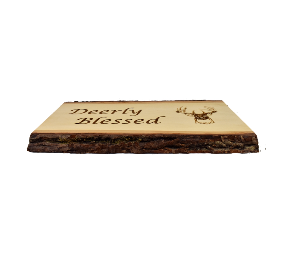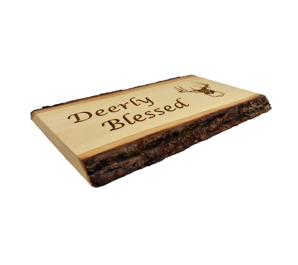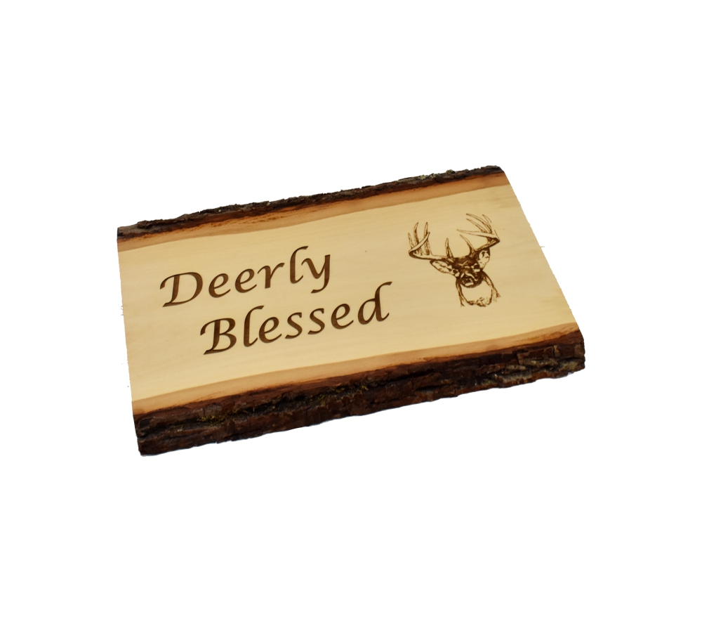 The Deerly Blessed live edge sign from Whitetail Woodcrafters is a unique way to decorate your home, cabin, or taxidermy showroom. These rustic signs are handcrafted from solid basswood for a quality you won’t find anywhere else. No matter where this laser engraved wood sign is displayed, it is sure to impress all who see it.