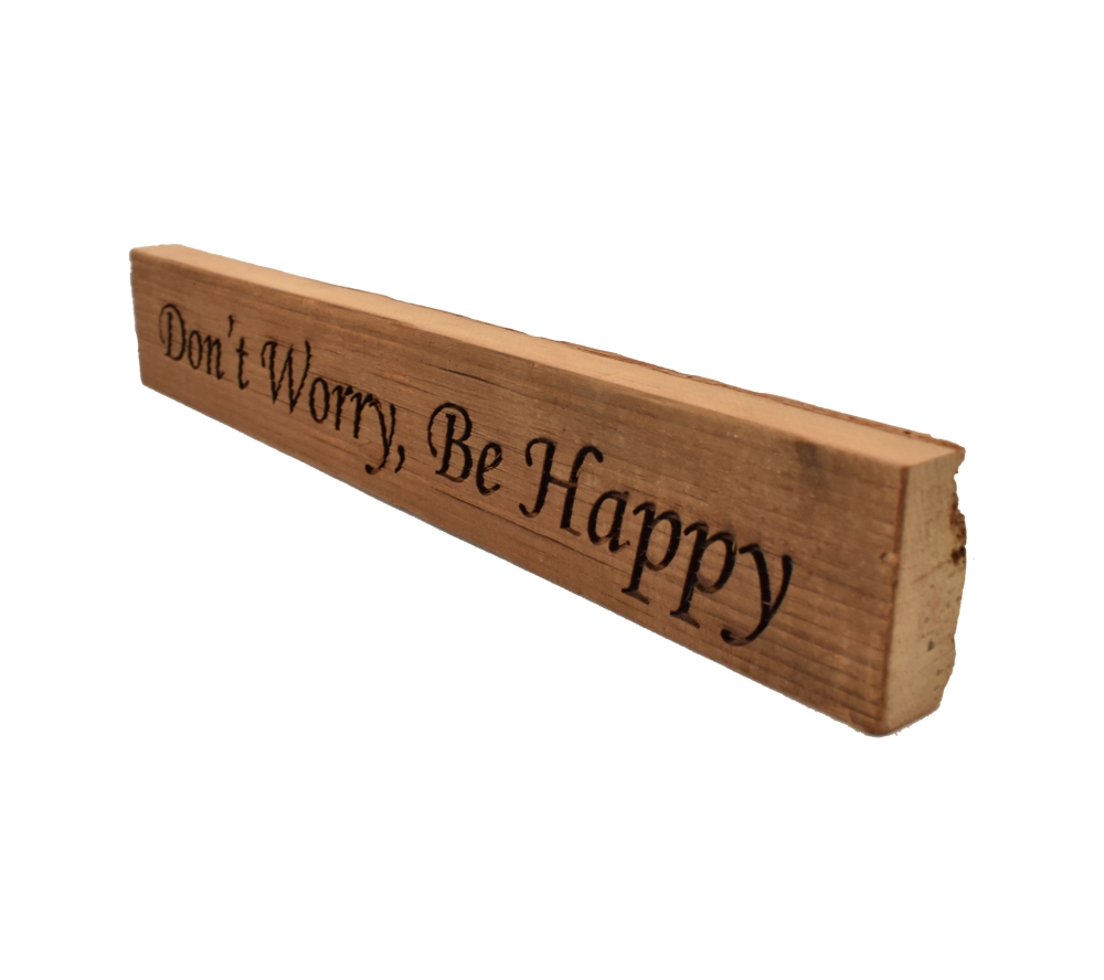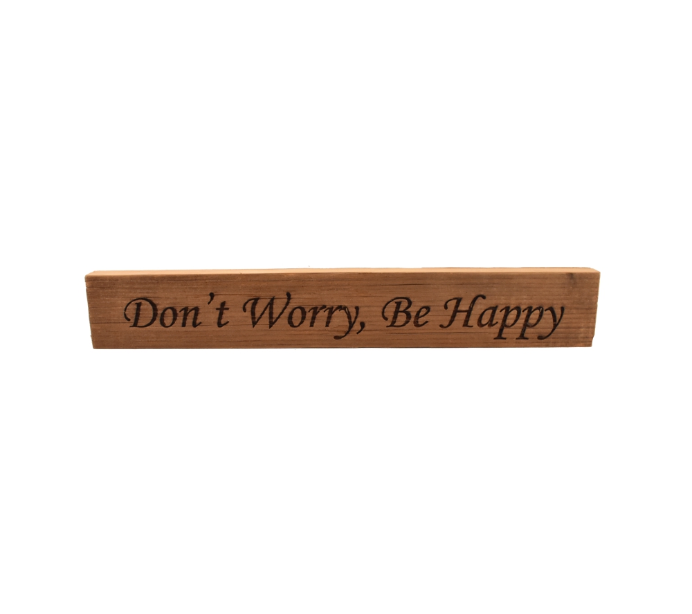 Our wood block signs are made from reclaimed wood from an over 100 year old barn and will look great in any home or cabin. Our “Don’t Worry, Be Happy” laser engraved wood block is a great reminder to enjoy life to the fullest and learn to dance in the rain.