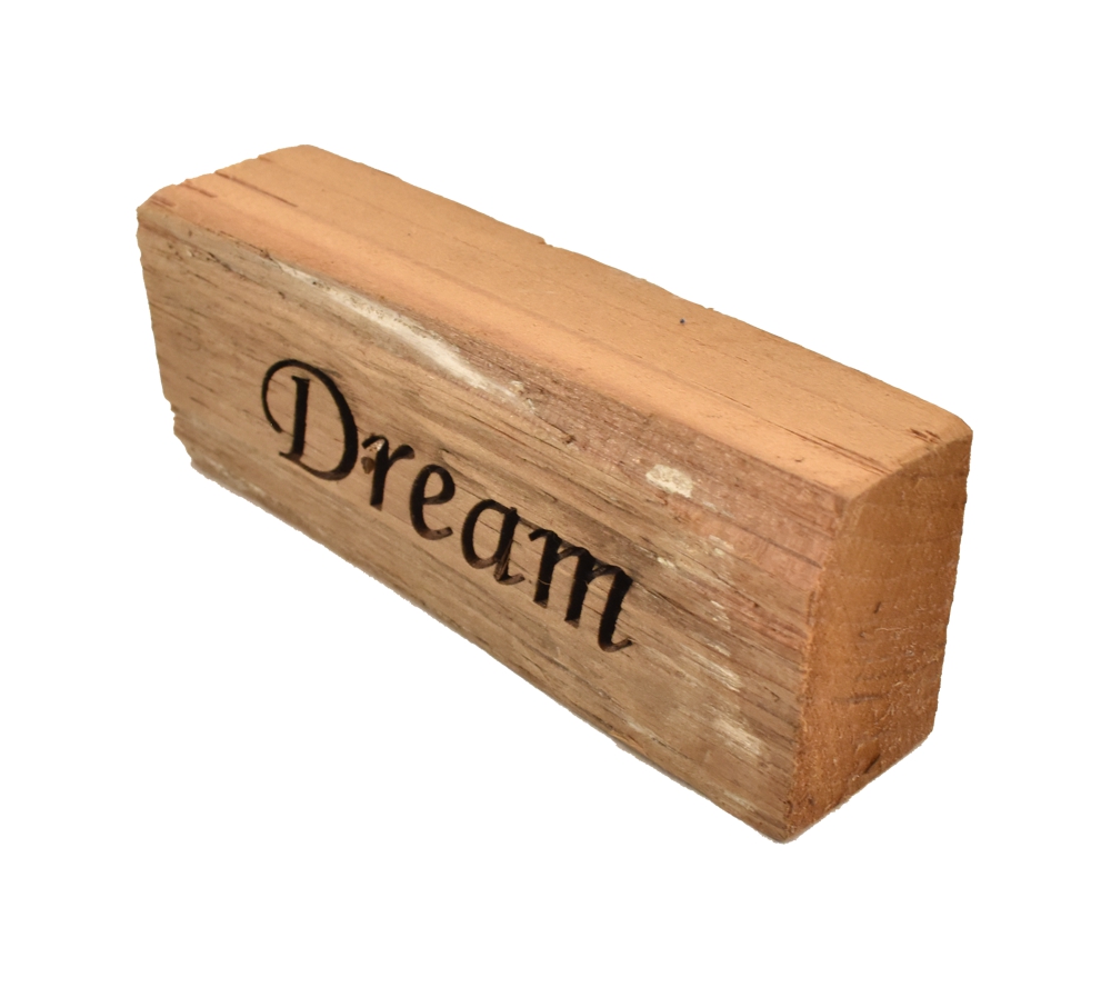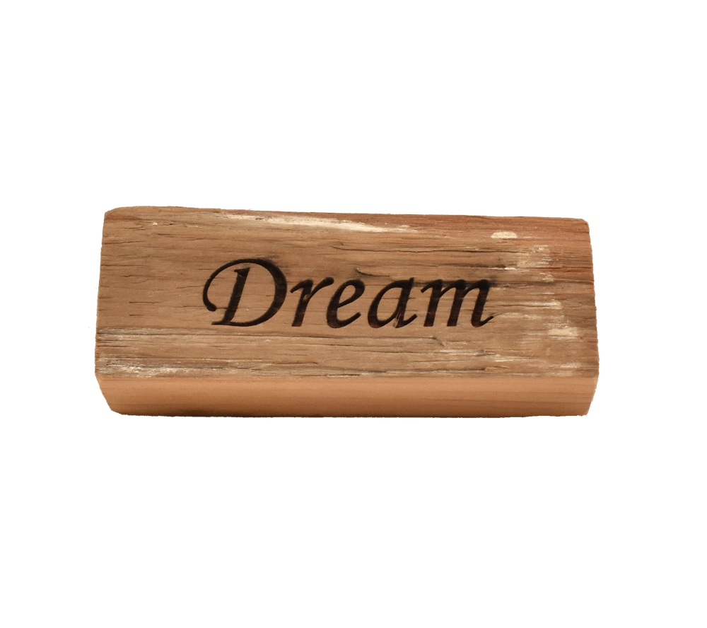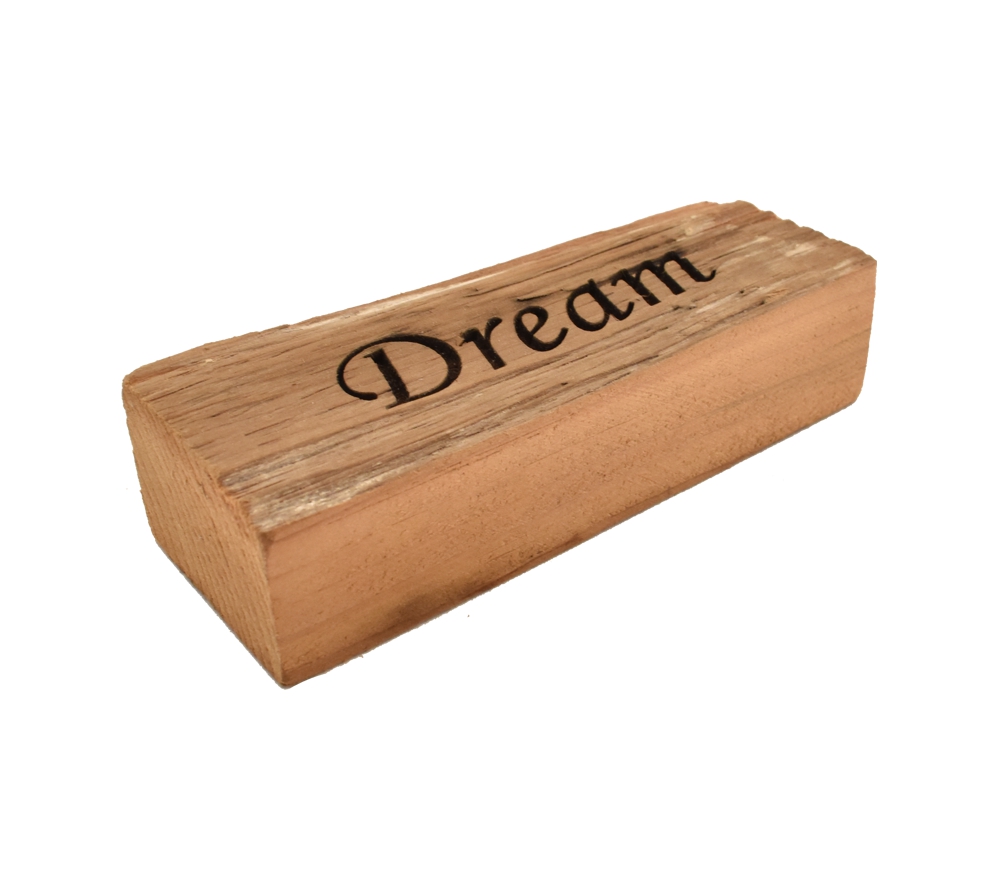 Our wood block signs are made from reclaimed wood from an over 100 year old barn and will look great in any home or cabin. Our “Dream” laser engraved wood block is a great reminder of how important it is to never stop dreaming.