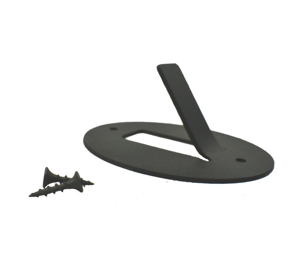 This metal skull hanger is simple to use. First, use your fingers to bend the center portion of the skull hook to about a 30 degree angle. This angle can be adjusted to achieve the perfect display angle for your skull. Then, use the provided screws to attach the hanger to the wall or the plaque you will be mounting the skull on. After your skull hanger is attached, simply insert the hook into the brain cavity of the skull and make any adjustments for the skull to hang straight.