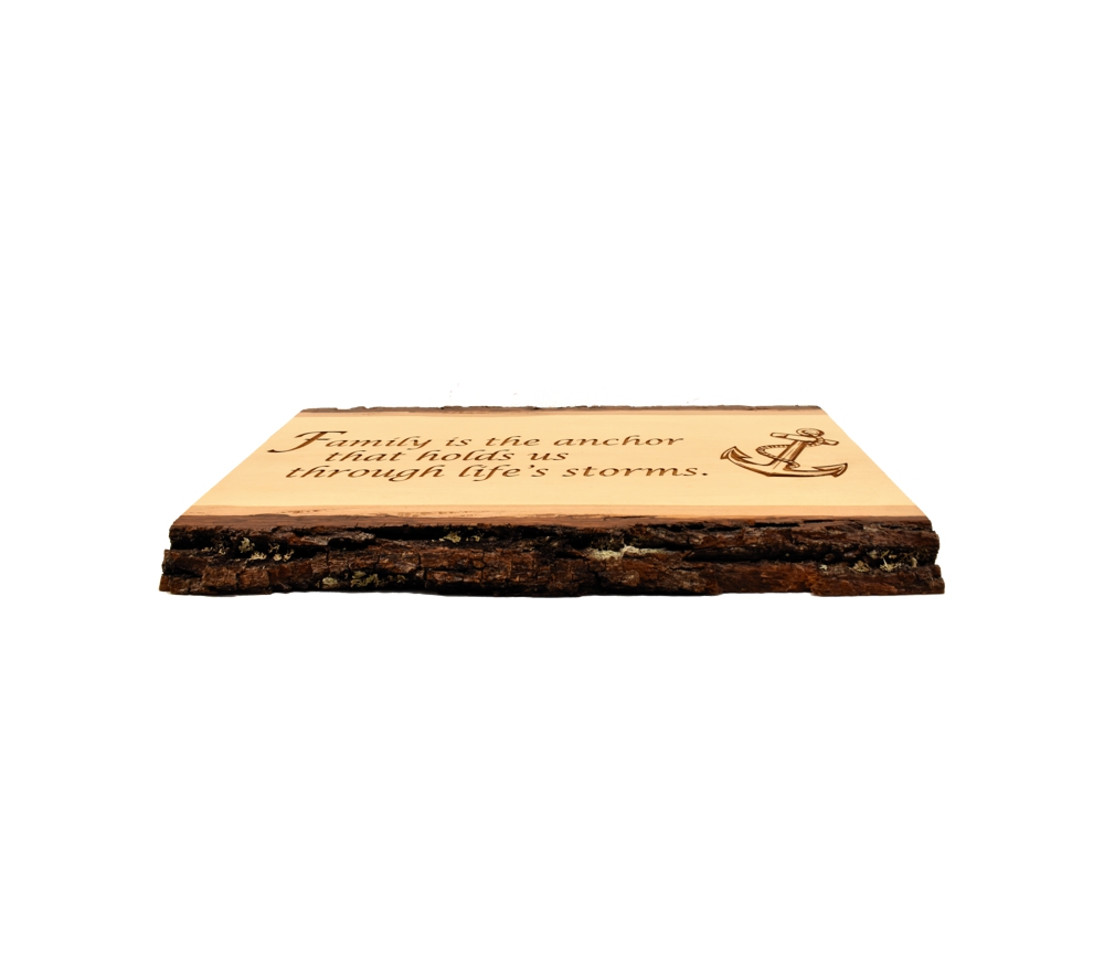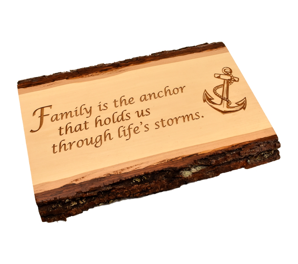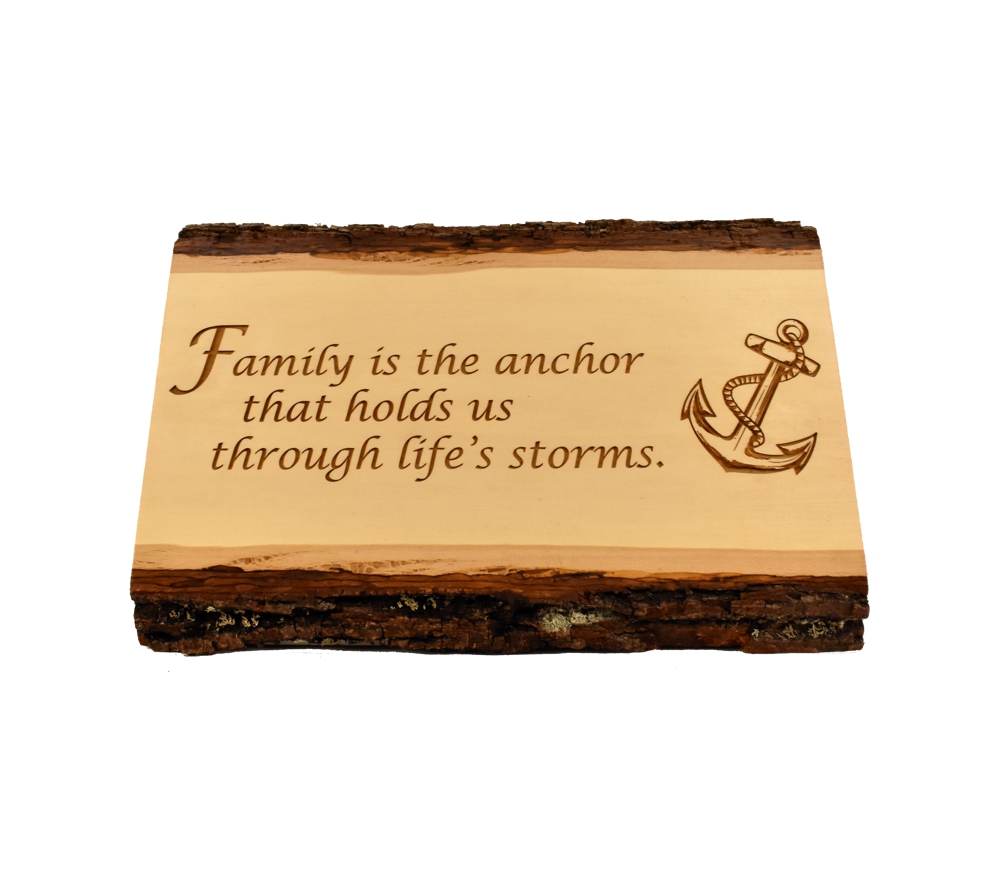 The Family Anchor live edge sign from Whitetail Woodcrafters is a beautiful reminder of how important family is. These rustic signs are handcrafted from solid basswood for a quality you won’t find anywhere else. This laser engraved wood sign makes a unique personalized wood gift that is sure to be cherished for years to come.