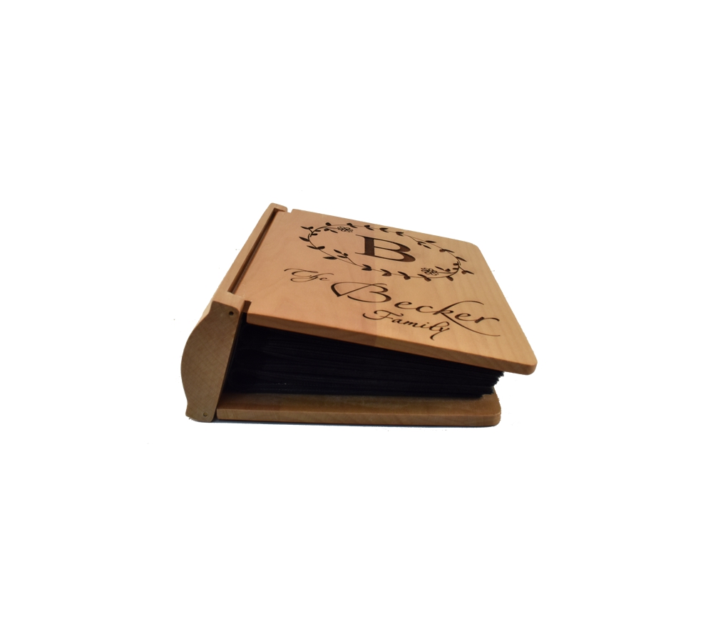 This personalized photo album with our Family Monogram design is the perfect place to collect all of your family’s memories. Our small engraved picture albums are crafted of solid maple, and are made to last for generations. Whether you give it as a gift or purchase one for your own family, a custom engraved wooden photo album is sure to be treasured for a lifetime.