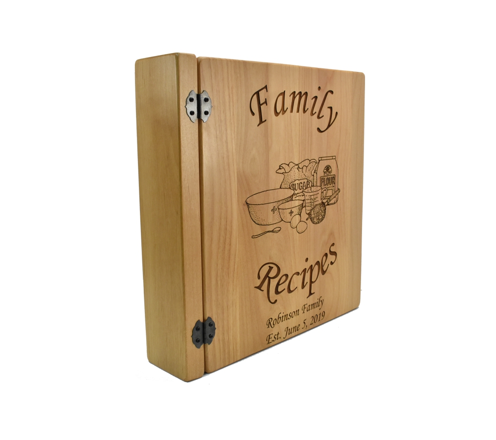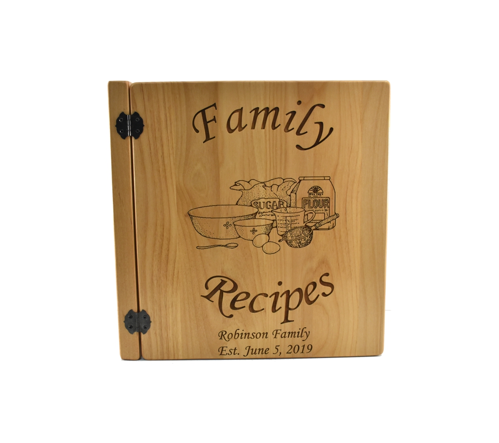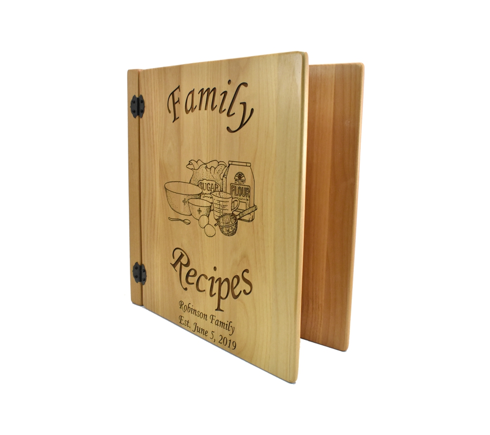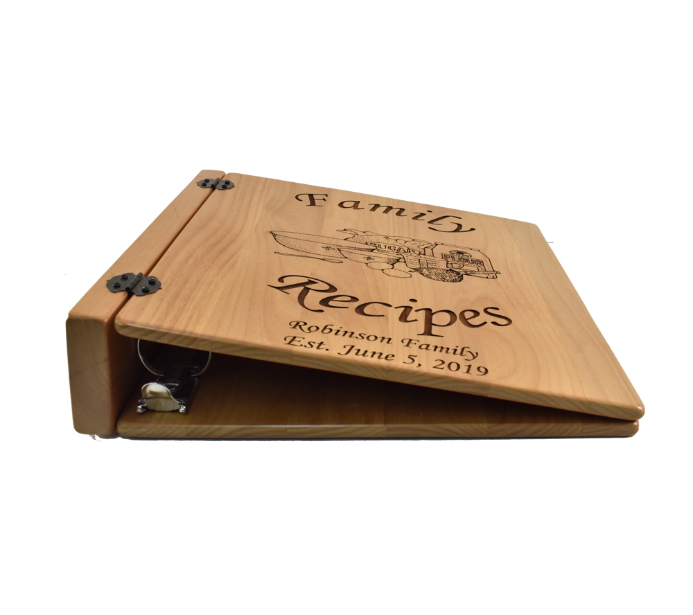 A custom engraved recipe book from Whitetail Woodcrafters is the perfect way to compile all the recipes that have been passed down in your family. Crafted of solid alder, our personalized recipe albums conveniently organize your recipes, and will look great displayed in your kitchen. All of our engraved wooden recipe books feature a standard 3 ring binder insert that can hold any 8.5″ x 11″ page. This allows you to make a custom album, scrapbook, guestbook, or a mixture of these pages for a completely unique display. We have a variety of sizes of page inserts available for purchase with your album as well.