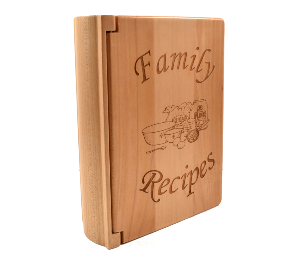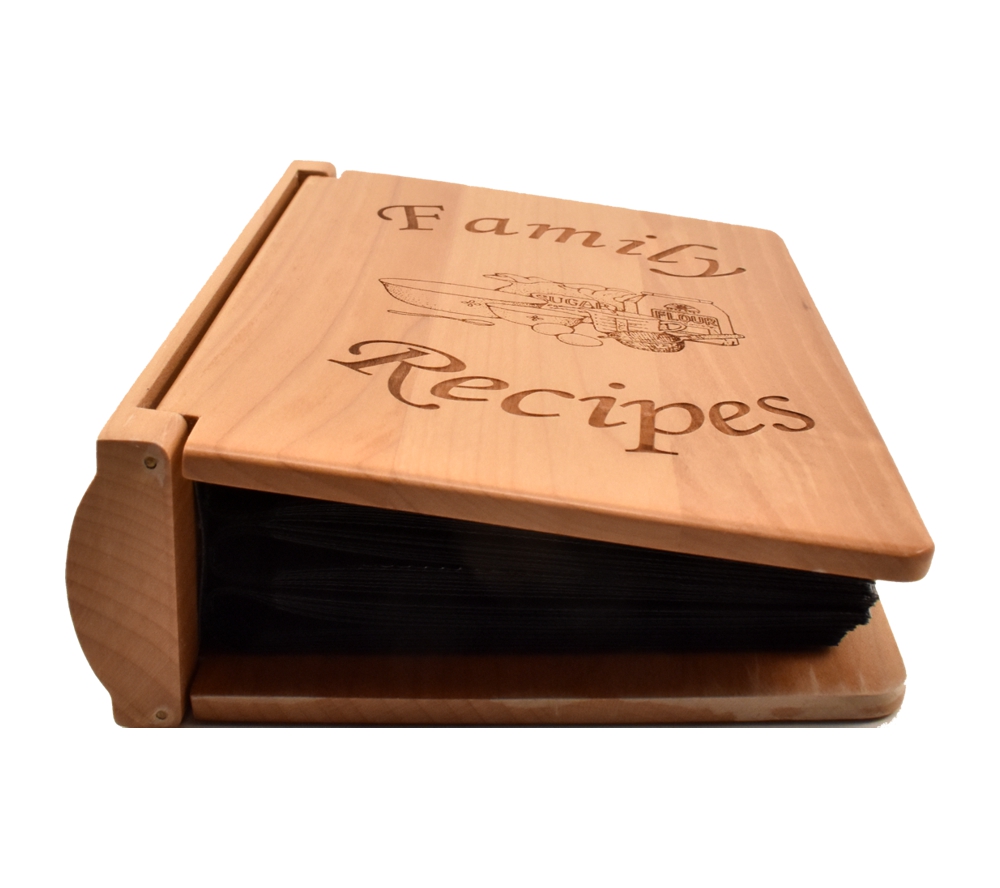 A custom engraved wooden recipe book from Whitetail Woodcrafters is the perfect way to compile all the recipes that have been passed down in your family. Crafted of solid maple, our personalized recipe albums conveniently organize your recipes, and will look great displayed in your kitchen.