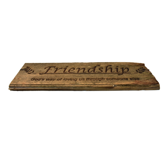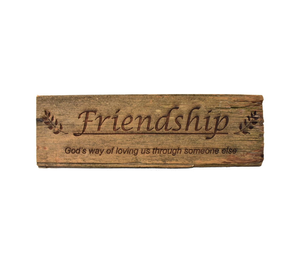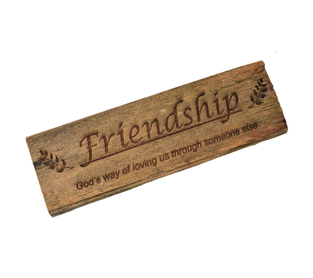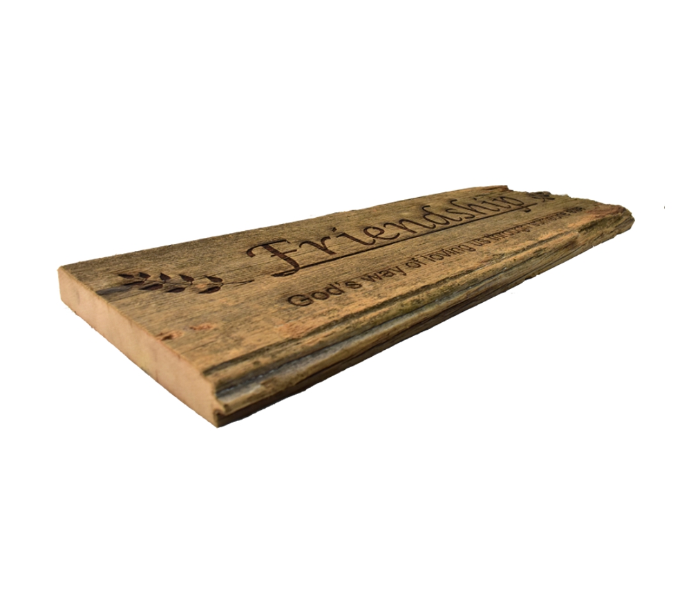 The Friendship barnwood sign from Whitetail Woodcrafters is a unique way to decorate your home or cabin, and makes a great gift. These rustic signs are handcrafted in our shop from barnwood from an over 100 year old barn for a quality and character you won’t find anywhere else. Our laser engraved wood signs are designed to maintain their beauty for a lifetime.