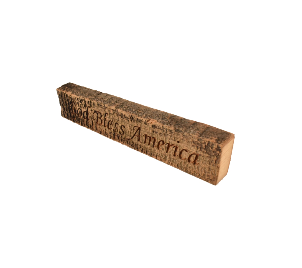 Our wood block signs are made from reclaimed wood from an over 100 year old barn and will look great in any home or cabin. Our “God Bless America” laser engraved wood block is the perfect patriotic accent to add to your home decor.