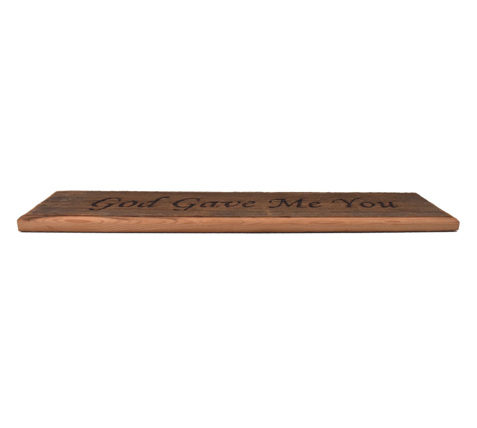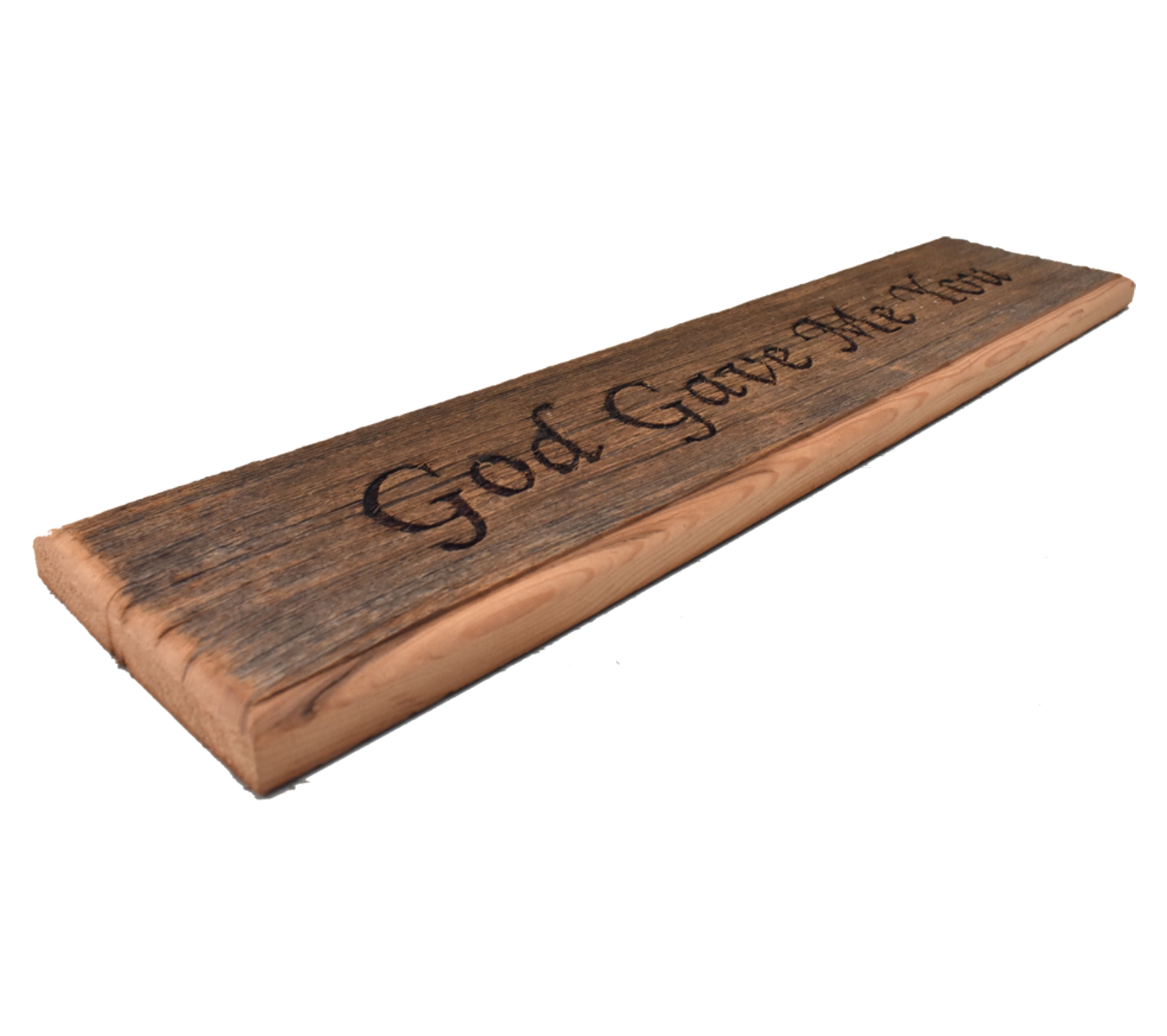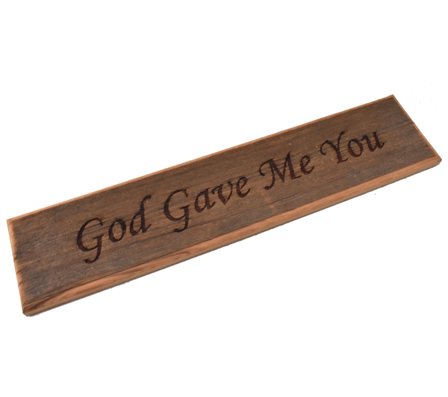 The God Gave Me You barnwood door topper from Whitetail Woodcrafters is a beautiful rustic decoration for your home or cabin. These rustic barnwood signs are handcrafted in our shop from barnwood from an over 100 year old barn for a quality and character you won’t find anywhere else. These laser engraved wood signs make great gifts and are sure to be cherished for years to come.