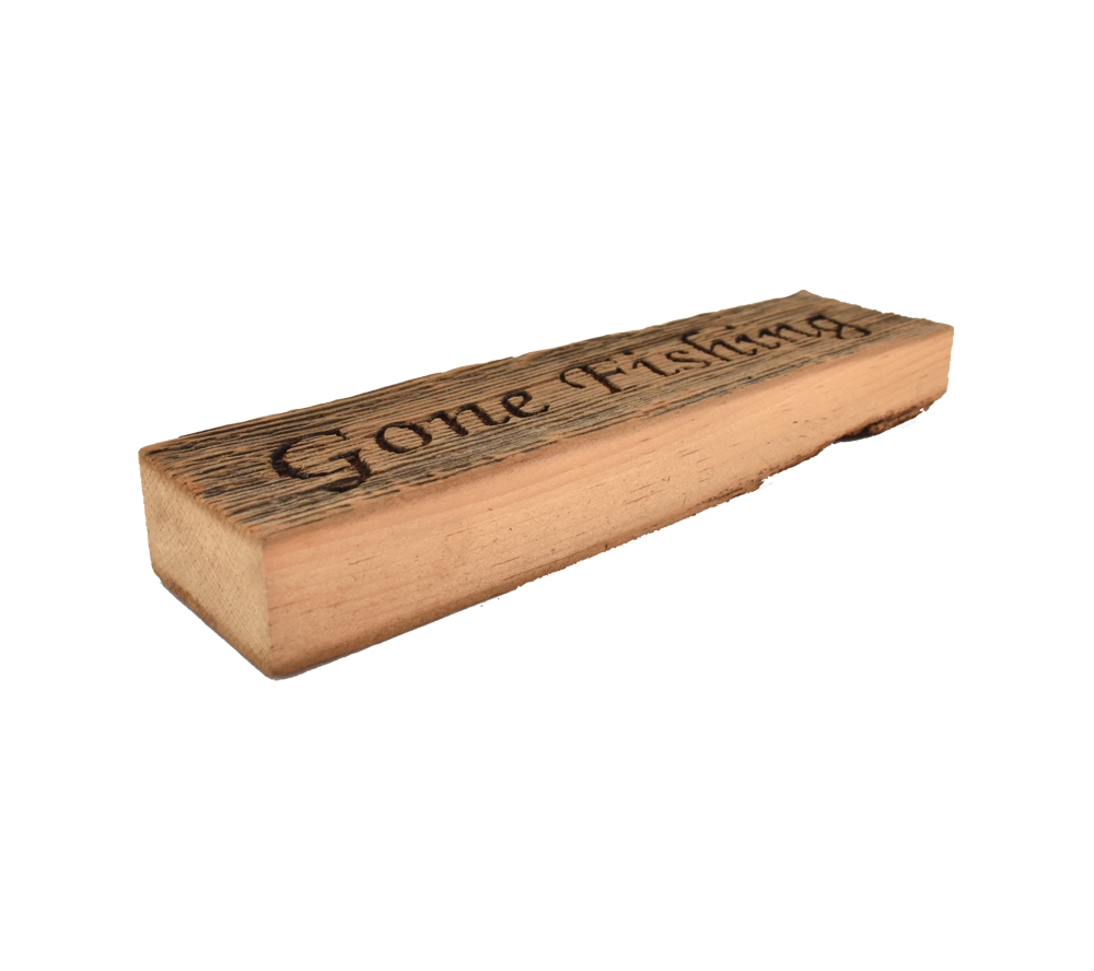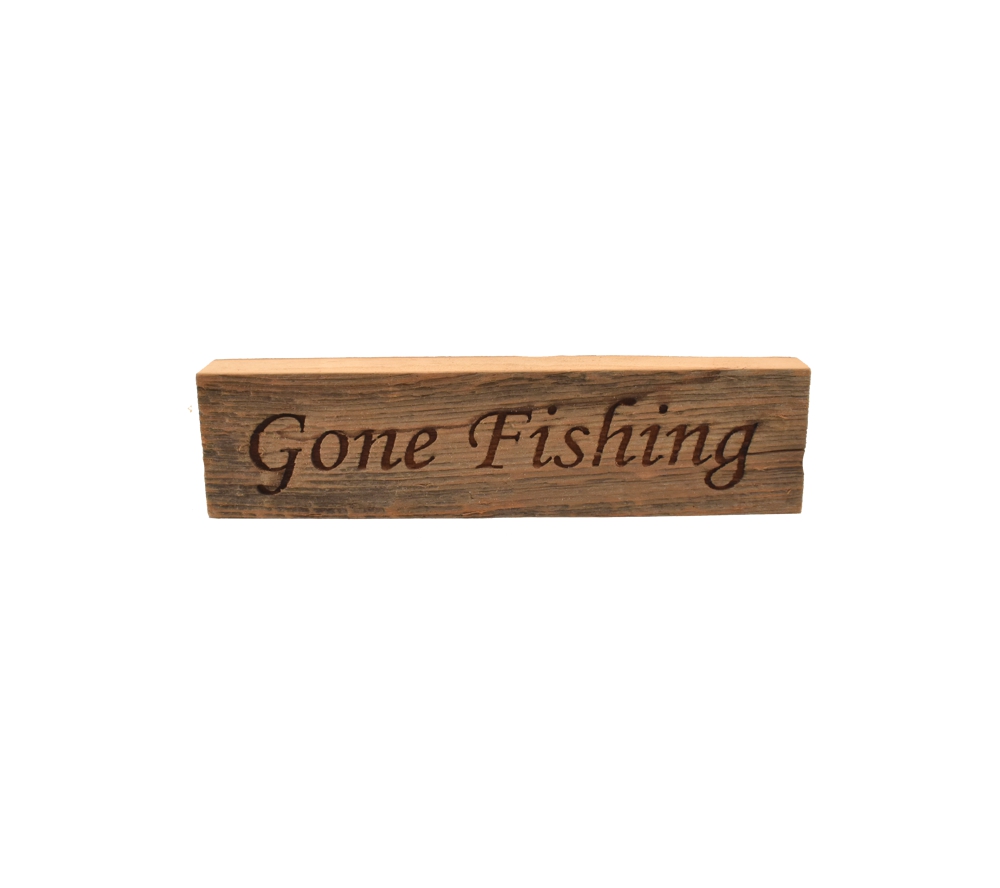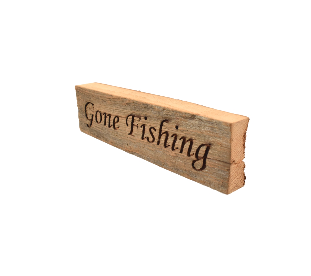 Our wood block signs are made from reclaimed wood from an over 100 year old barn and will look great in any home or cabin. Our “Gone Fishing” laser engraved wood block is the perfect size to sit on your desk and remind your coworkers why you’re not at work!