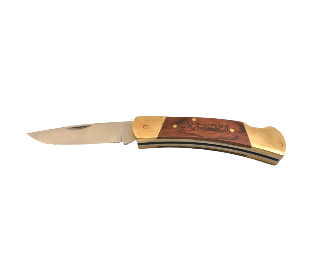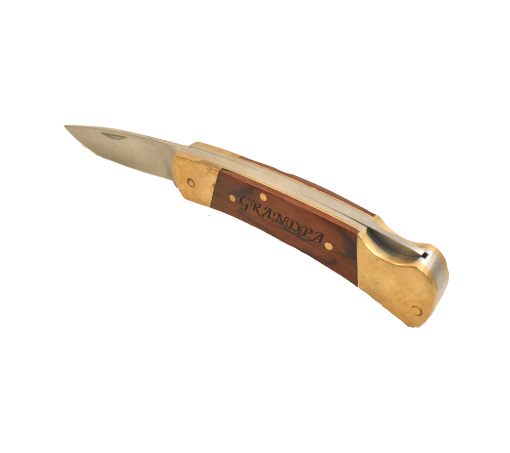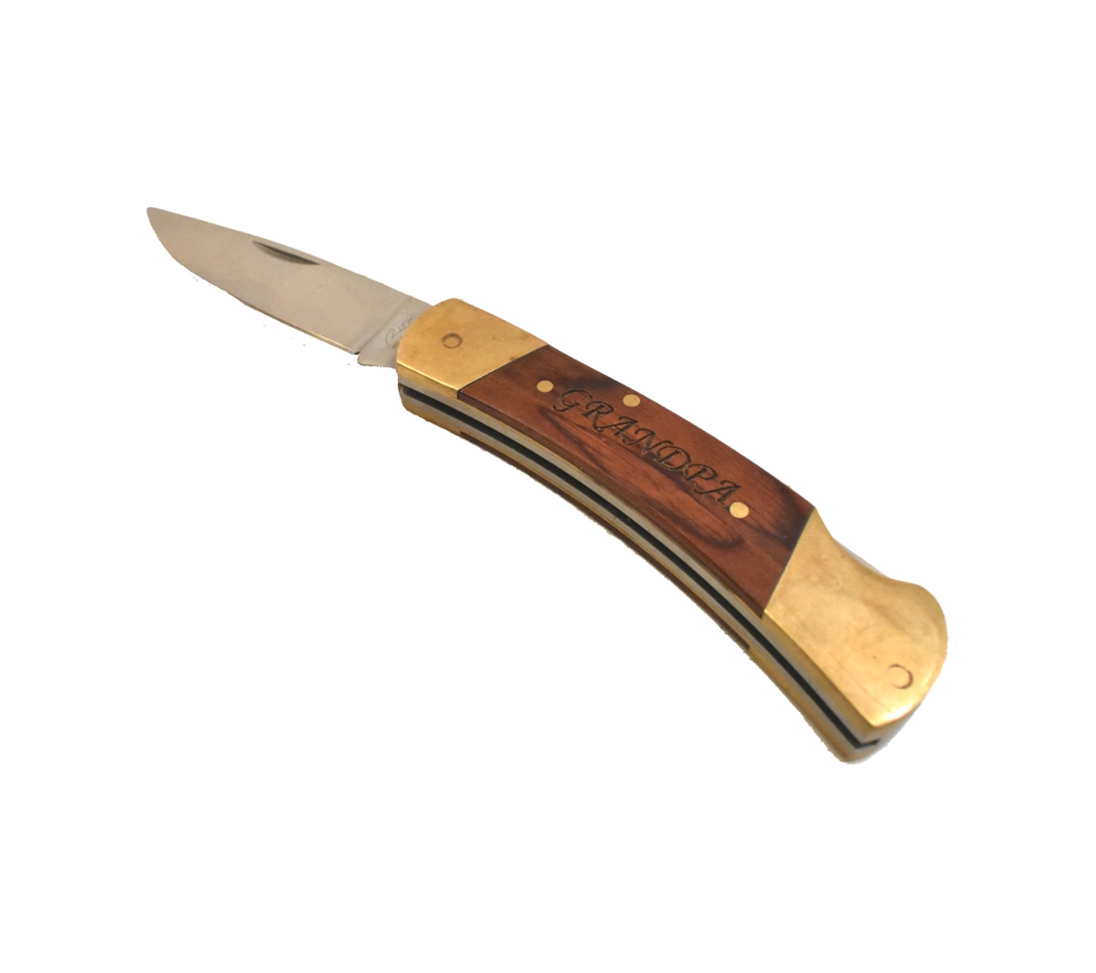 Engraved pocket knives from Whitetail Woodcrafters are a gift that will always be used and appreciated by your grandpa. If your grandpa already has everything, then get him a personalized pocket knife that will be used by your grandpa on a daily basis. This high quality lockback knife features a pakkawood handle and a stainless steel stay-sharp blade.