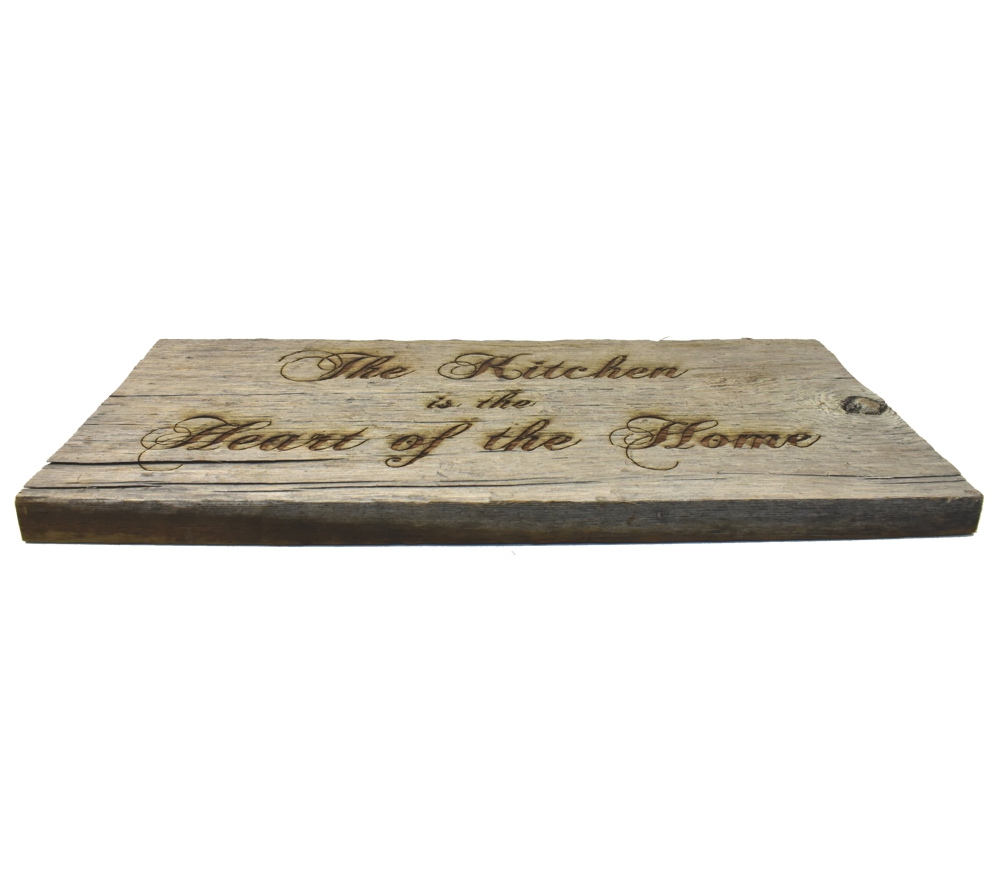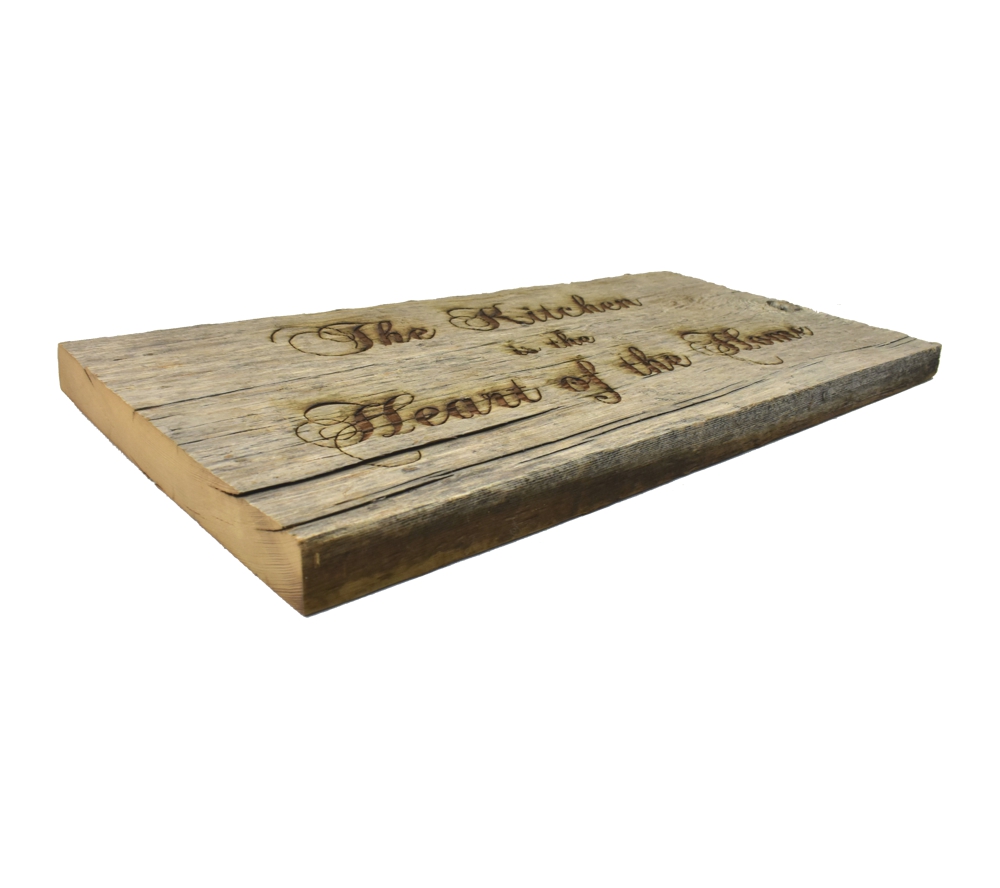 The Heart of the Home barnwood sign from Whitetail Woodcrafters is a unique way to decorate your kitchen, and makes a great gift. These rustic signs are handcrafted in our shop from barnwood from an over 100 year old barn for a quality and character you won’t find anywhere else. Our laser engraved wood signs are designed to maintain their beauty for a lifetime.