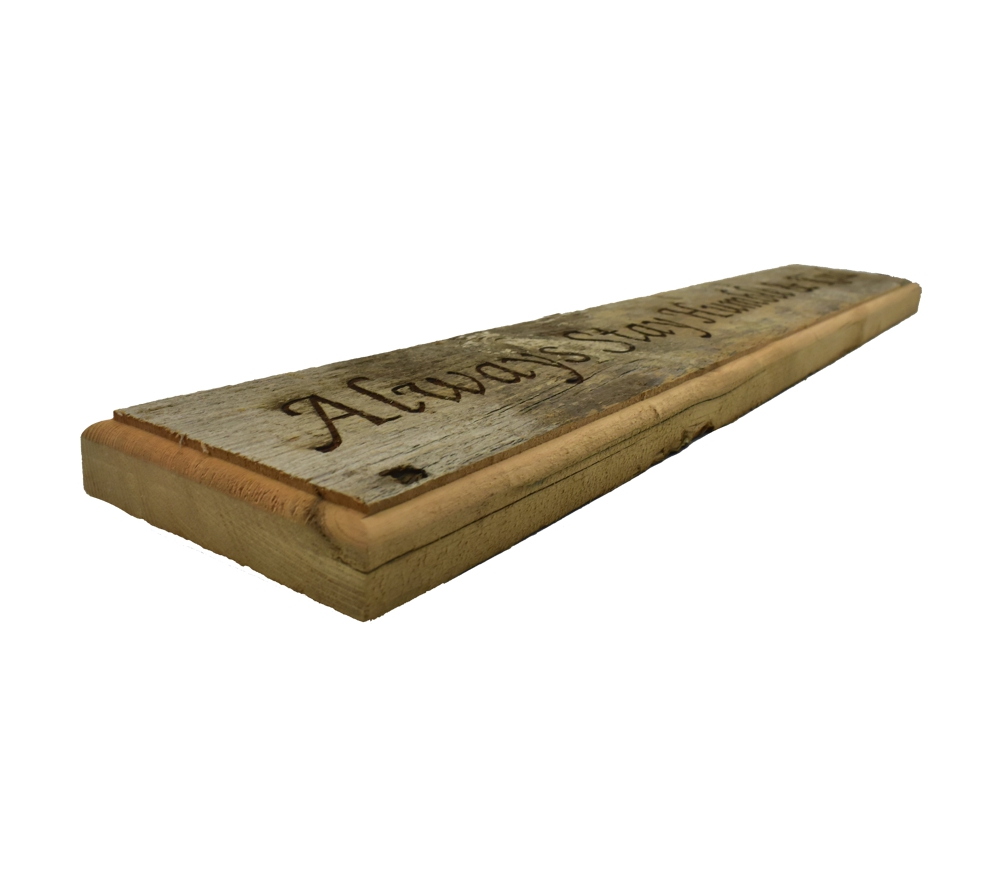 The Humble & Kind barnwood door topper from Whitetail Woodcrafters is a beautiful rustic decoration for your home or cabin. These rustic barnwood signs are handcrafted in our shop from barnwood from an over 100 year old barn for a quality and character you won’t find anywhere else. Whether you give it as a gift or use it to decorate your own child’s room, a laser engraved wood sign will maintain its beauty for a lifetime.