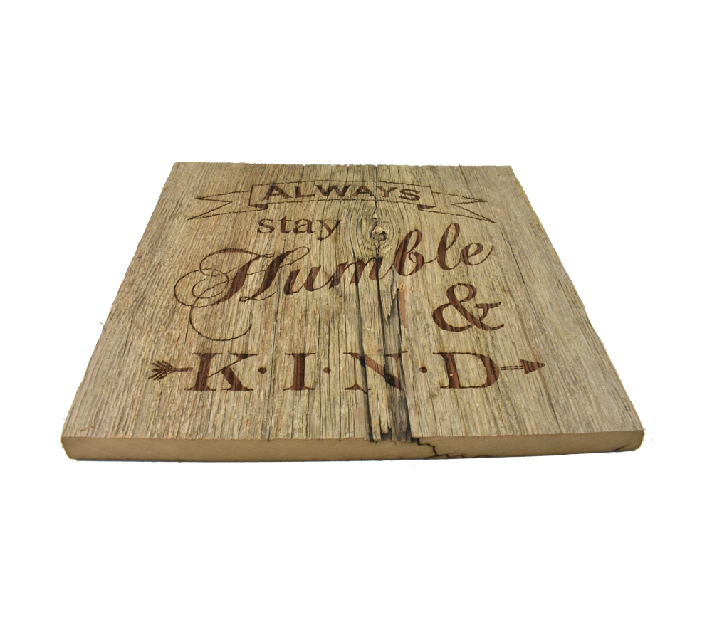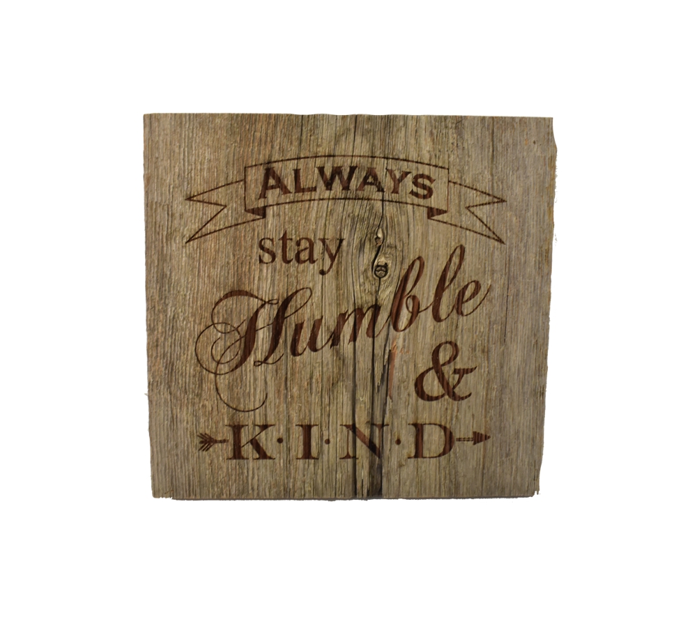The Humble & Kind barnwood sign from Whitetail Woodcrafters is a great reminder to have in your home or cabin, and it makes a great gift. These rustic signs are handcrafted in our shop from barnwood from an over 100 year old barn for a quality and character you won’t find anywhere else. Our laser engraved wood signs are designed to maintain their beauty for years to come.
