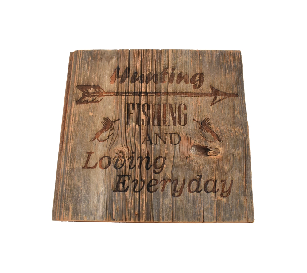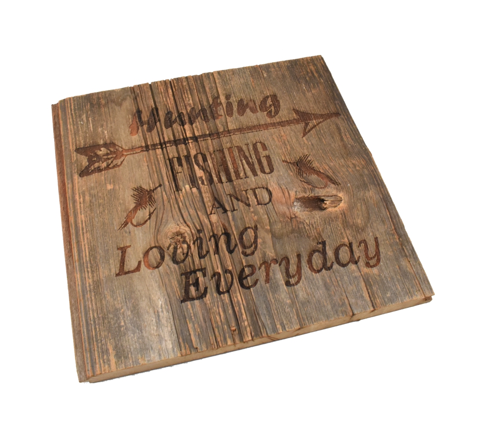 The Hunting, Fishing, and Loving barnwood sign from Whitetail Woodcrafters is a unique way to decorate your home, cabin, or taxidermy showroom. These rustic signs are handcrafted in our shop from barnwood from an over 100 year old barn for a quality and character you won’t find anywhere else. Whether you display this laser engraved wood sign in your home or give it as a gift, it is sure to maintain its beauty and impress all who see it for years to come.