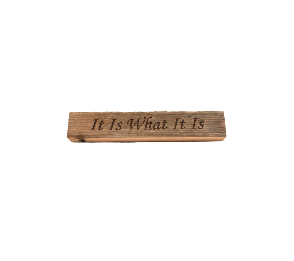 Our wood block signs are made from reclaimed wood from an over 100 year old barn and will look great in any home or cabin. Our “It Is What It Is” laser engraved wood block will remind you to take a deep breath and let go of the things that are beyond your control.