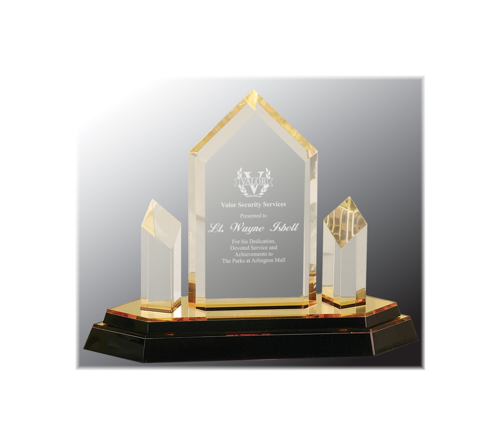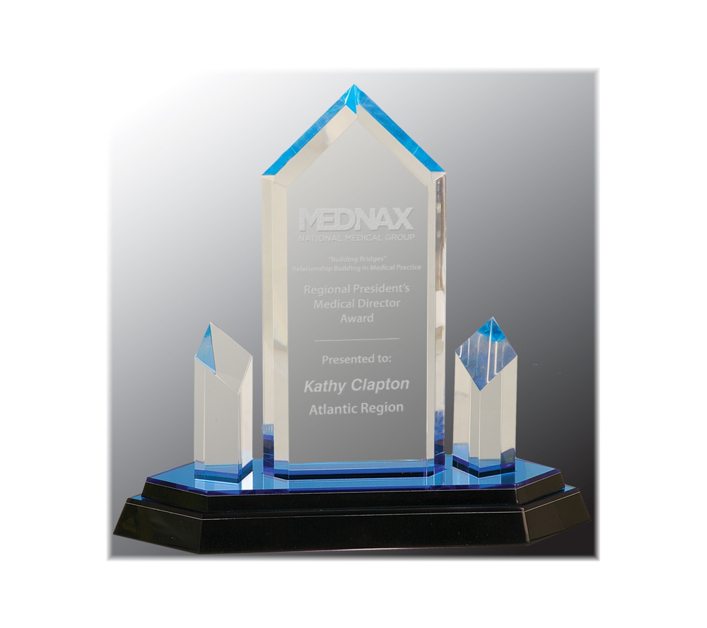 Our custom acrylic corporate award is a freestanding award to recognize the distinguished members on your team. These laser engraved, personalized awards are made from solid acrylic and are available in two different color choices and in two different sizes. Create unique acrylic awards to highlight the deserving people in your organization.