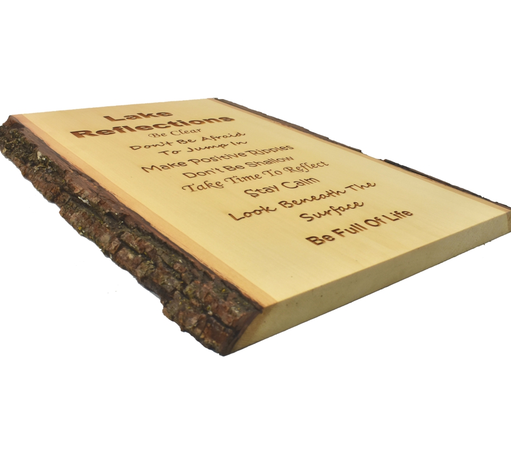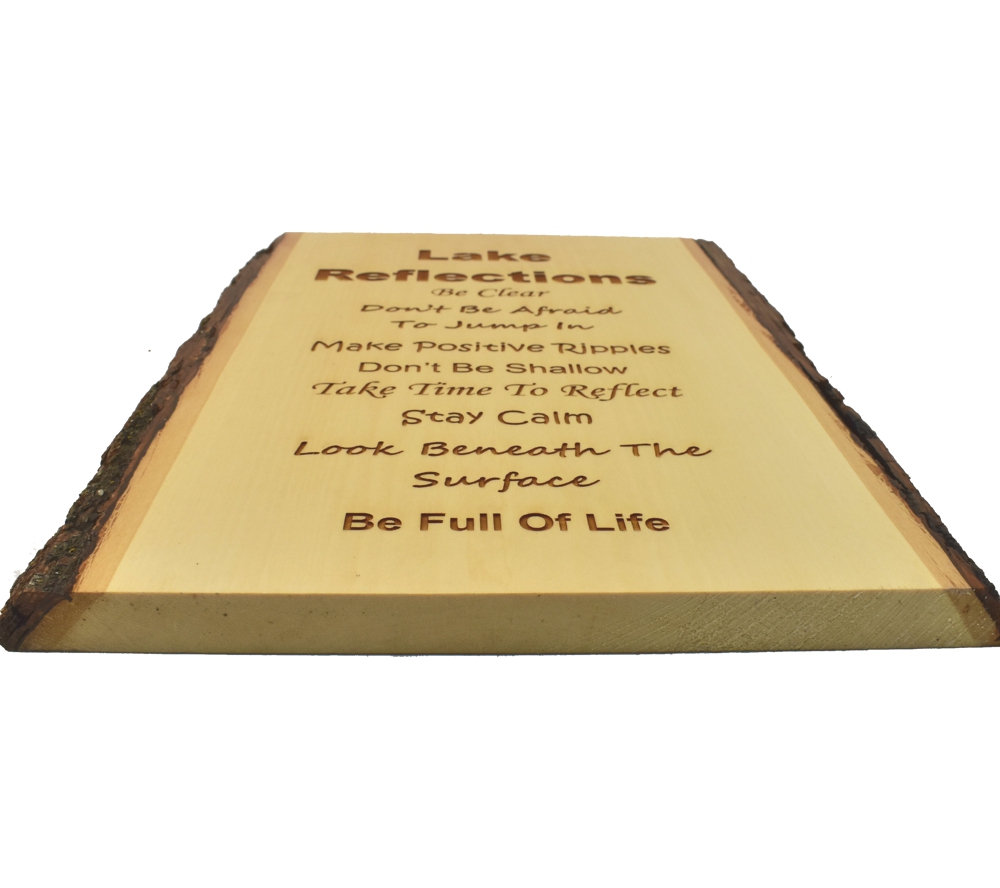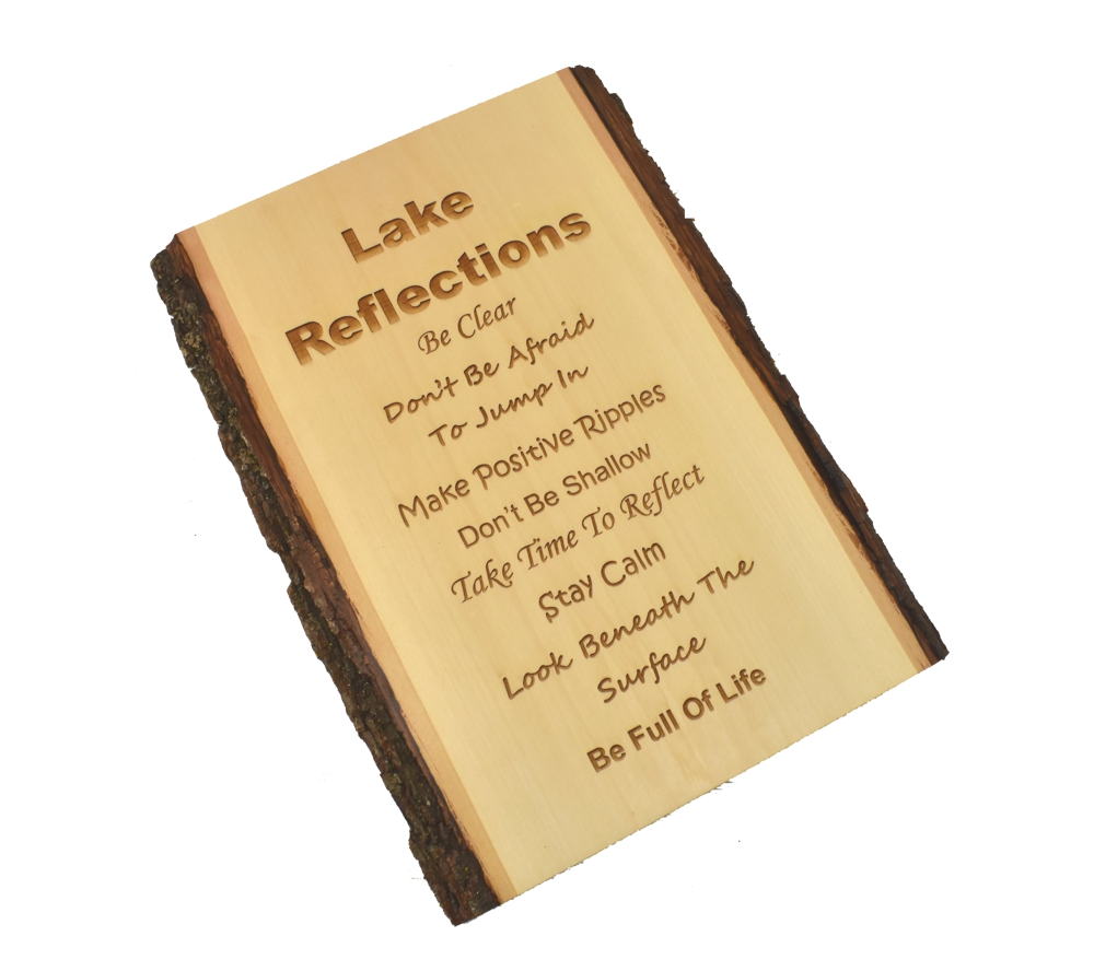 The wit and wisdom of the Lake Reflections live edge sign from Whitetail Woodcrafters is a unique way to decorate your home or lake house. These rustic signs are handcrafted in our shop from solid basswood for a quality and character you won’t find anywhere else. Whether you give this laser engraved wood sign as a gift or display it in your own home, it is sure to impress all who see it.