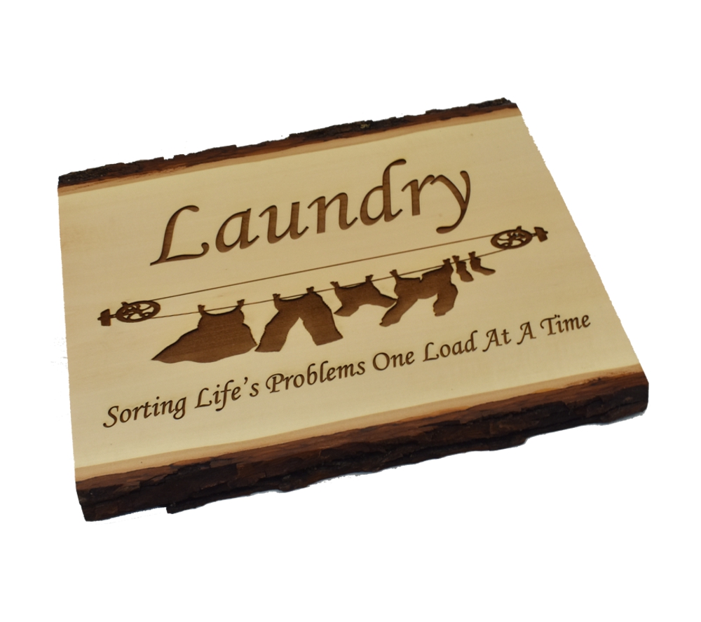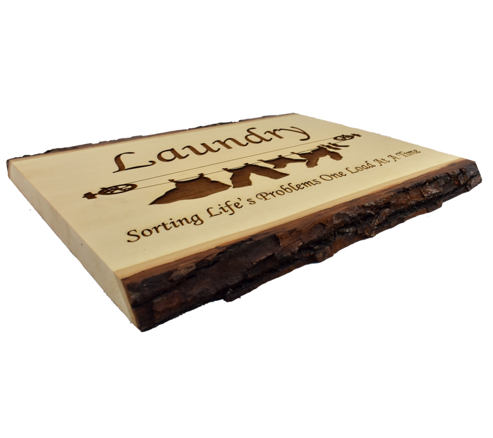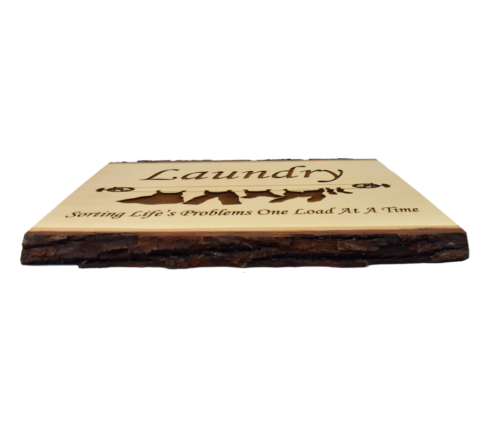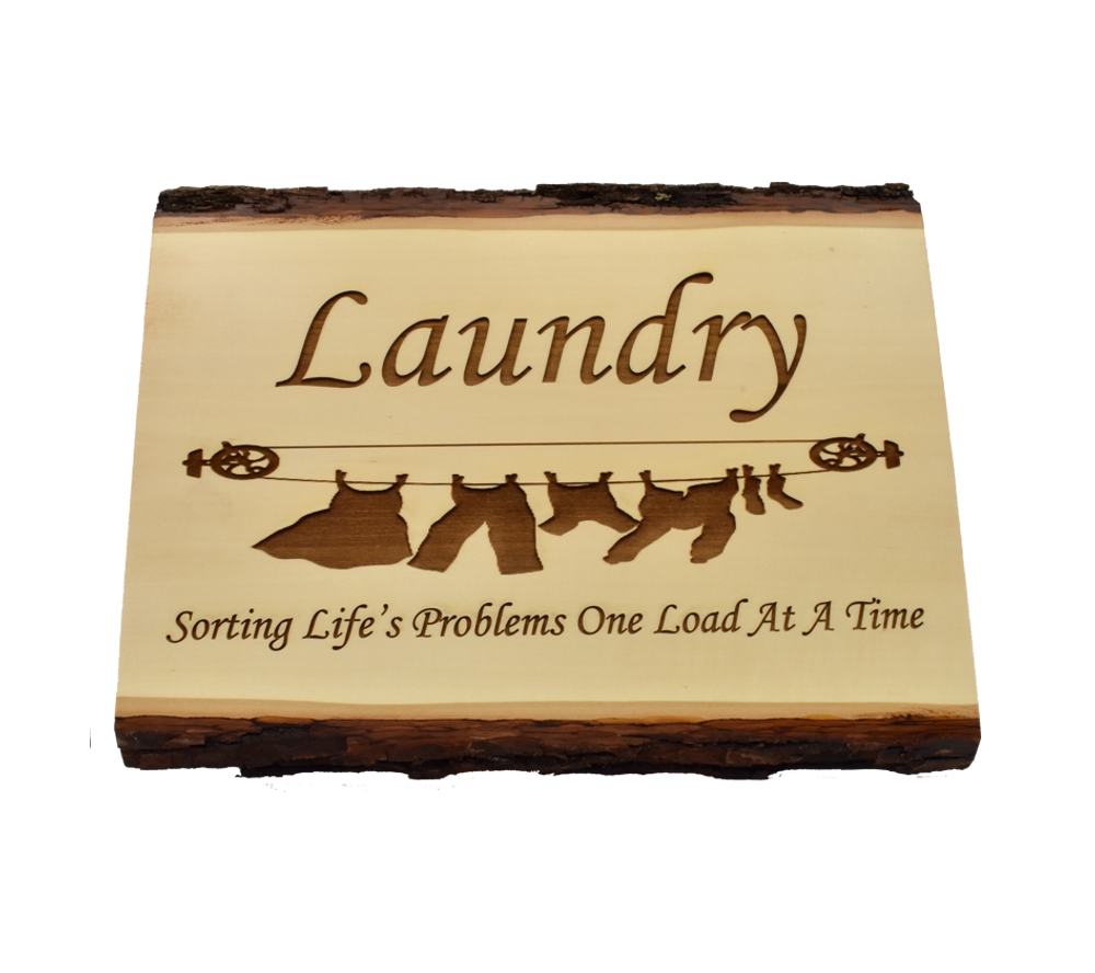 The Laundry, Sorting Life’s Problems live edge sign from Whitetail Woodcrafters is a unique way to decorate your home or cabin, and makes a wonderful housewarming gift. These rustic signs are handcrafted in our shop from solid basswood for a quality and character you won’t find anywhere else. Whether you give this laser engraved wood sign as a gift or display it in your own home or cabin, it is sure to impress all who see it.