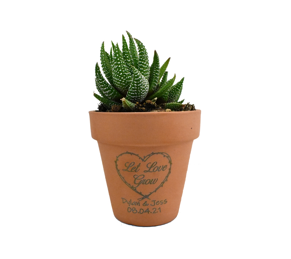 Looking for an easy, but beautiful wedding favor that your guests will actually want? Look no further than these engraved terra cotta pot wedding favors from Whitetail Woodcrafters. Simply add a plant to these engraved terra cotta pot wedding favors, and you have a complete wedding favor for your guests. Your wedding guests will love these engraved terra cotta pot wedding favors and the beautiful plant you add to them. With preset quantity discounts available, you can choose just the right amount of engraved terra cotta pot wedding favors for the number of guests attending your wedding.