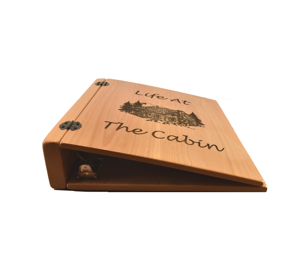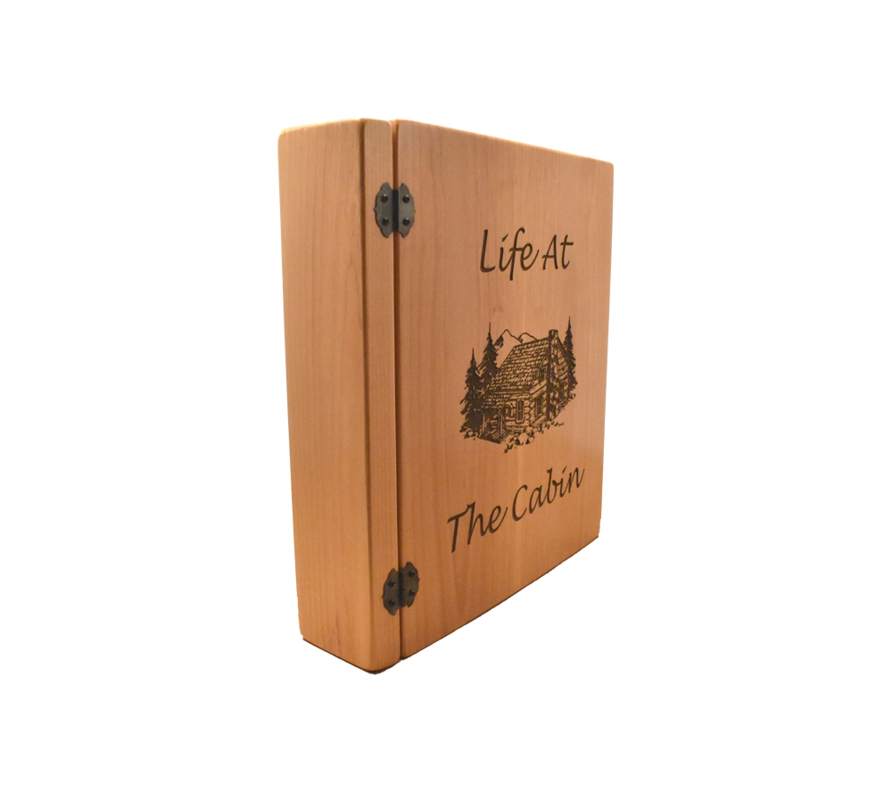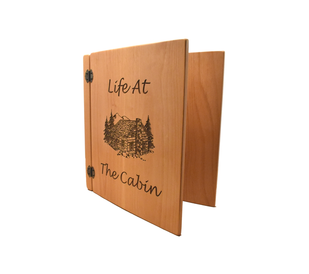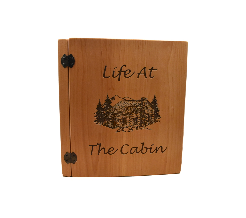 This beautifully handcrafted album is one of our most popular personalized wood gifts, and comes custom laser engraved in a rustic Life at the Cabin theme. Meticulously crafted from premium alder, this personalized photo album will become a treasured family keepsake. All of our 3 ring wooden photo albums feature a standard 3 ring binder insert that can hold any 8.5″ x 11″ page. This allows you to make a custom album, scrapbook, guestbook, or a mixture of these pages for a completely unique display. We have a variety of sizes of page inserts available for purchase with your album as well.