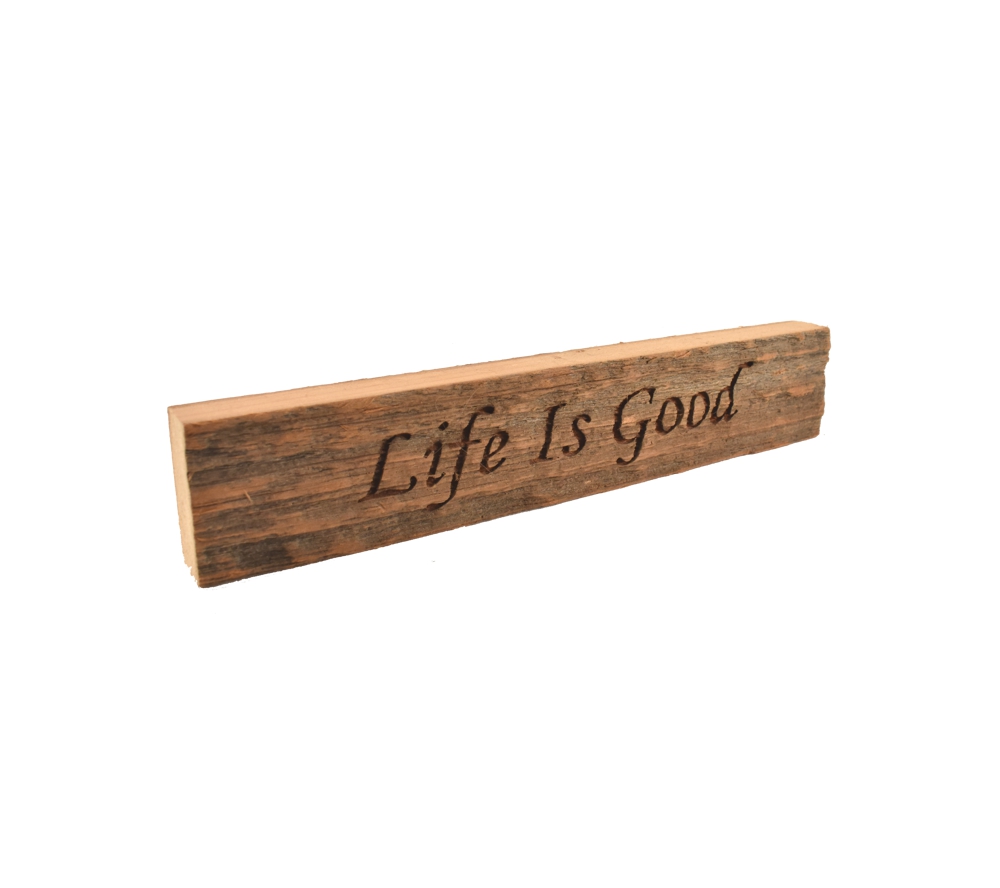 Our wood block signs are made from reclaimed wood from an over 100 year old barn and will look great in any home or cabin. Our “Life Is Good” laser engraved wood block is a great reminder to look on the bright side and find the good in everything.
