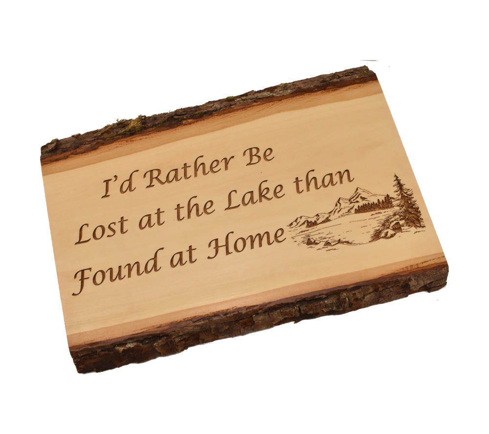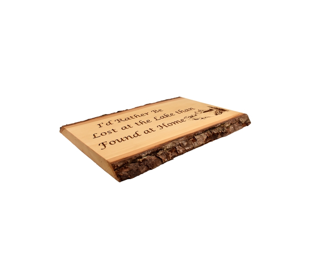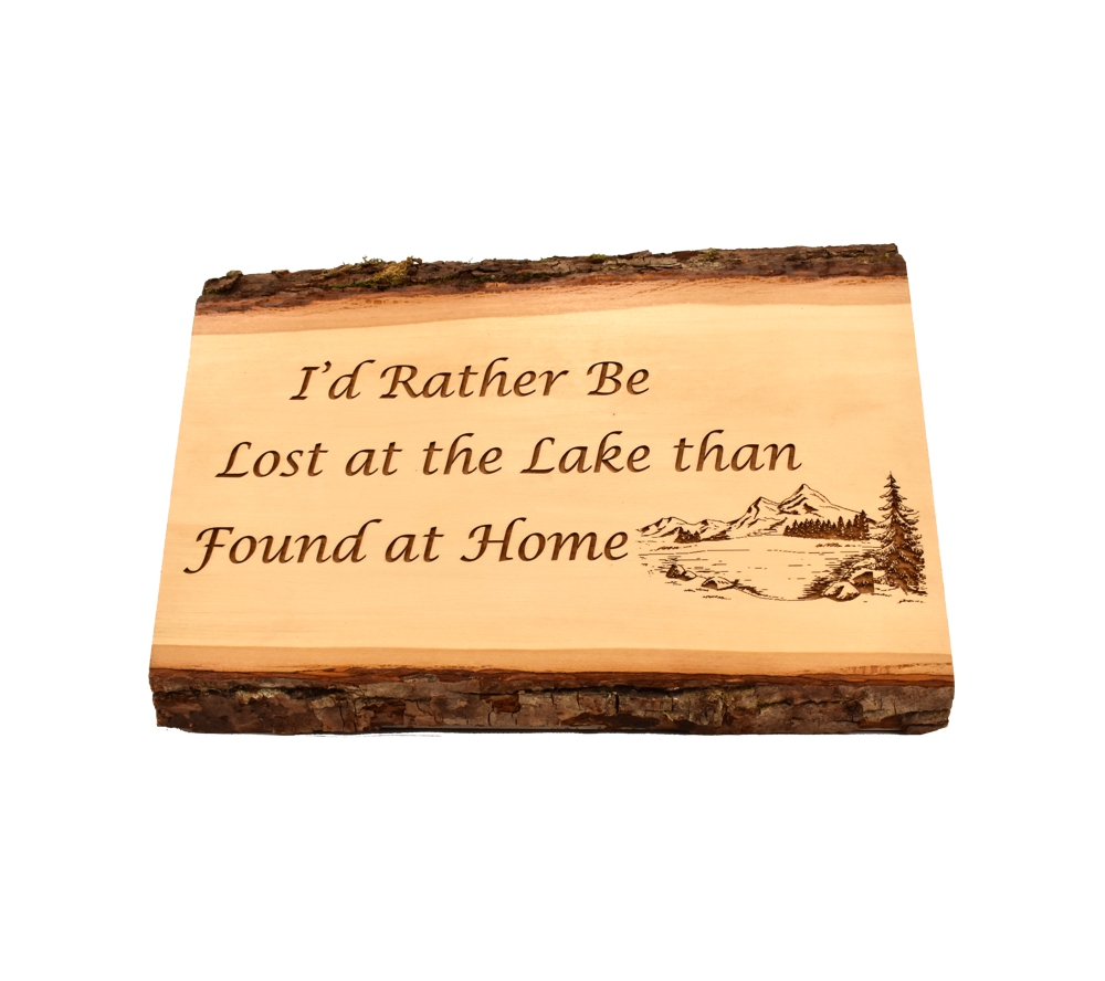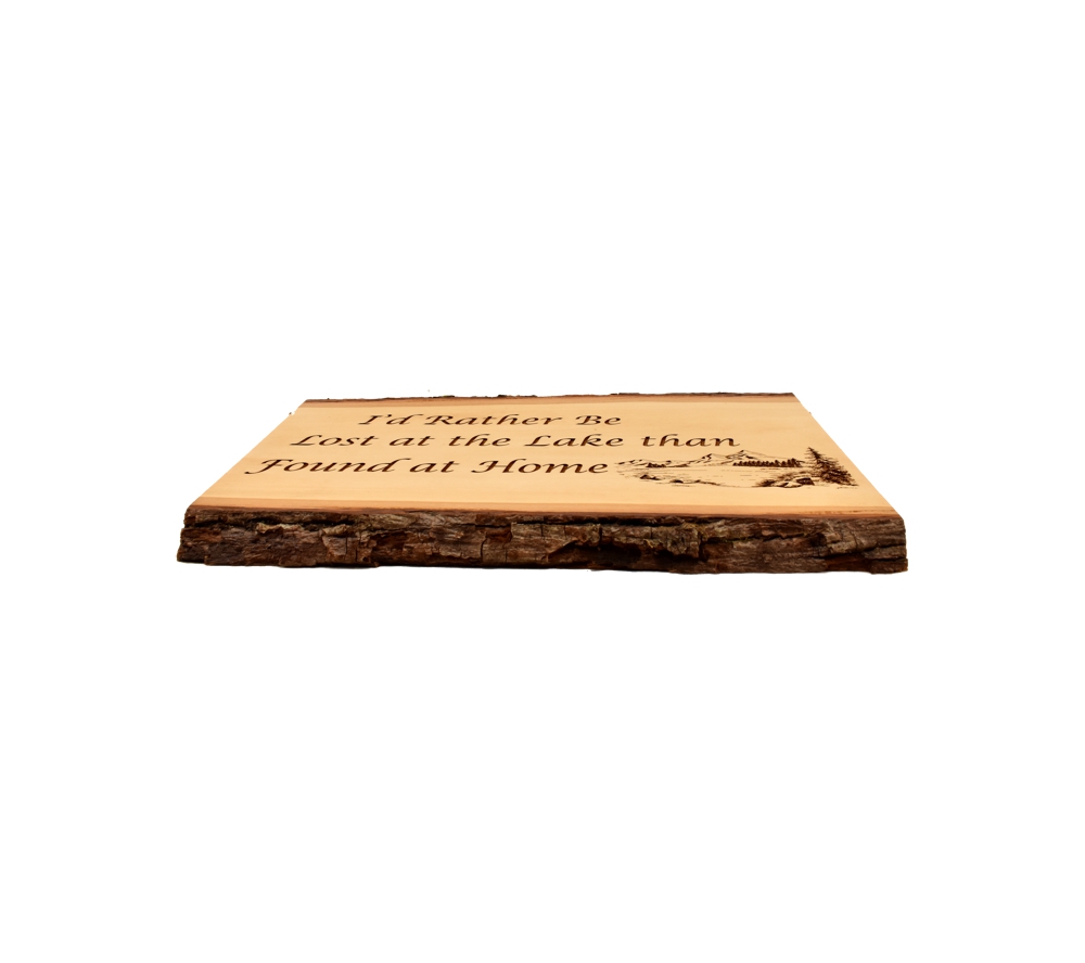 The Lost at the Lake live edge sign from Whitetail Woodcrafters is a great way to show your love for the outdoors. These rustic signs are handcrafted from natural basswood for a quality you won’t find anywhere else. This laser engraved wood sign makes a unique personalized wood gift that is sure to be cherished for years to come.