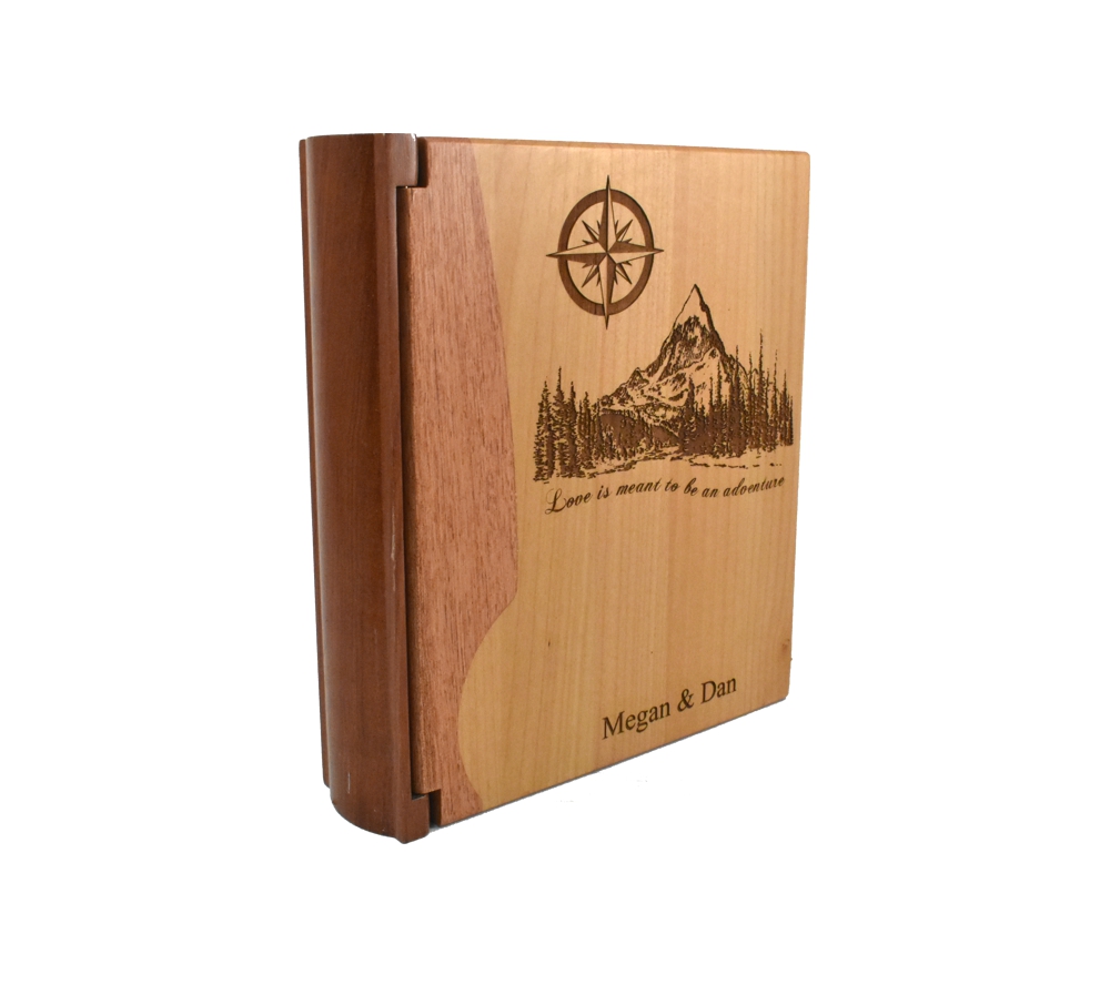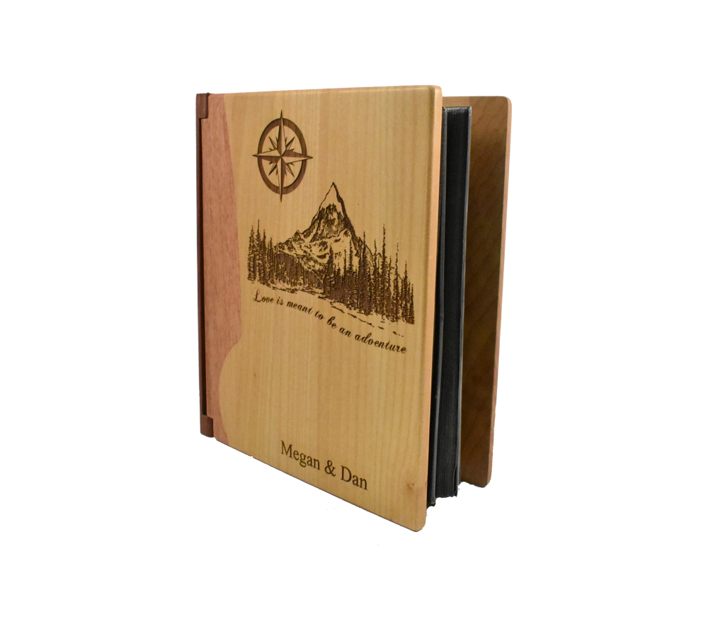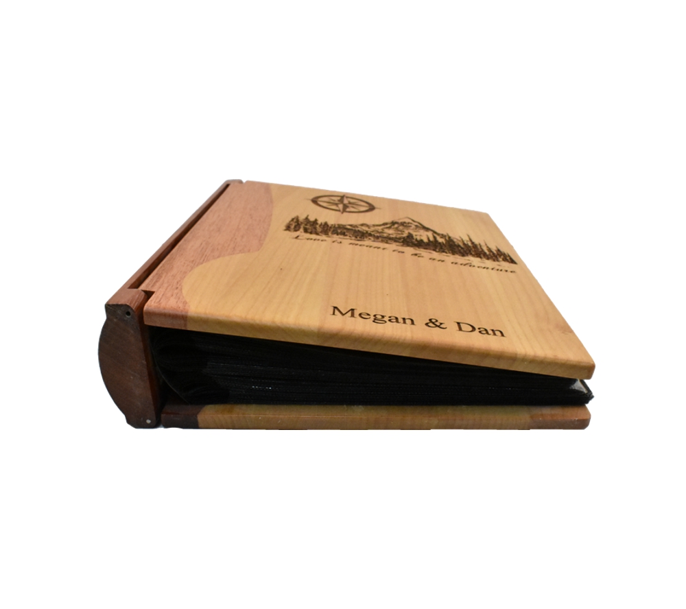 Create a beautiful wedding or anniversary personalized photo album from Whitetail Woodcrafters. Meticulously crafted from premium rosewood and maple, this wooden photo album will become a family keepsake. Whether you give this custom engraved album as a gift or purchase one for your significant other, it is sure to be treasured for generations.
