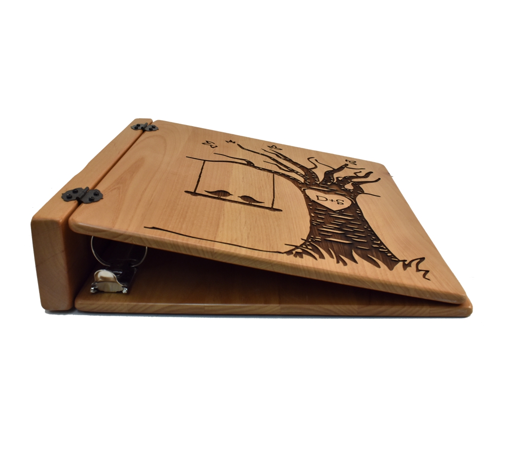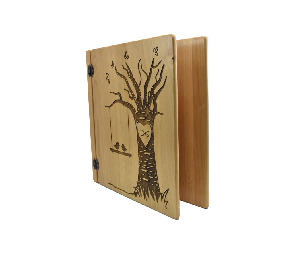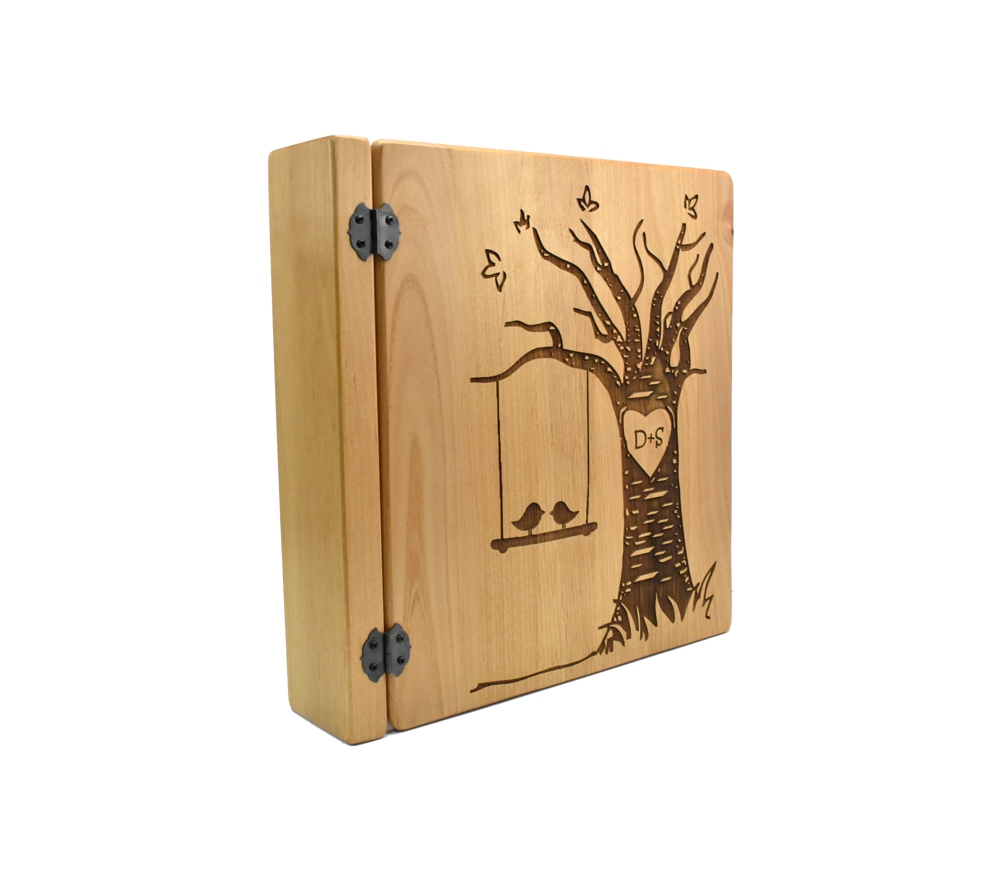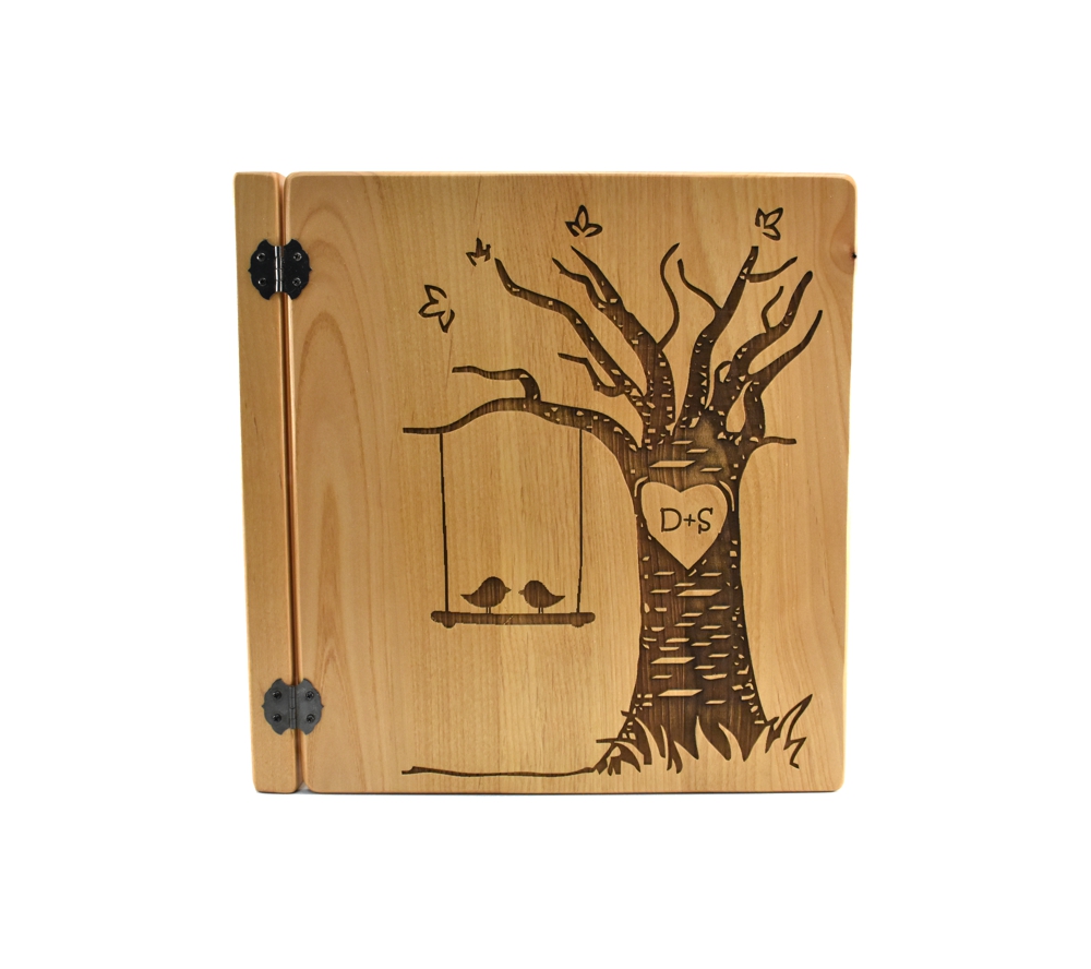 This personalized photo album with our Lovebirds design is perfect for highlighting any rustic wedding. Our 3 ring engraved picture albums are crafted of solid alder and are sure to become family keepsakes. All of our custom engraved wooden photo albums feature a standard 3 ring binder insert that can hold any 8.5″ x 11″ page. This allows you to make a custom album, scrapbook, guestbook, or a mixture of these pages for a completely unique display. We have a variety of sizes of page inserts available for purchase with your album as well.