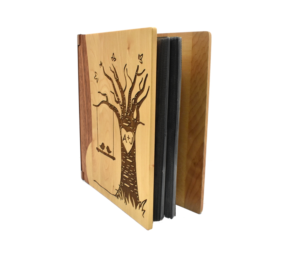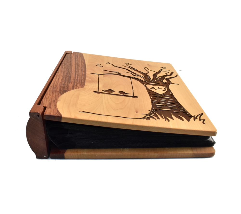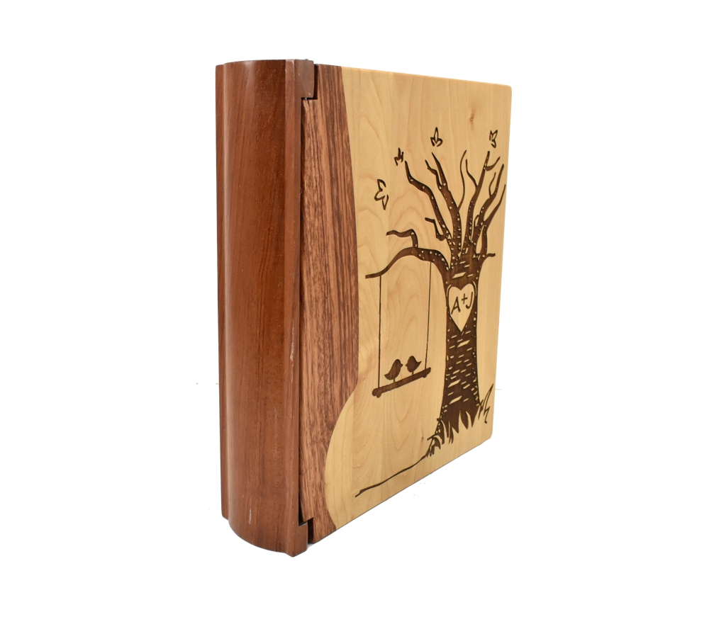 This personalized photo album with our Lovebirds design is perfect for highlighting any rustic wedding. Our large engraved wood albums are crafted of solid maple and rosewood and are sure to become family keepsakes. This engraved photo album makes the perfect personalized wood gift for anyone celebrating a wedding or anniversary, and will be treasured forever. If you would like text added above the engraving design, enter your custom text in the box above.