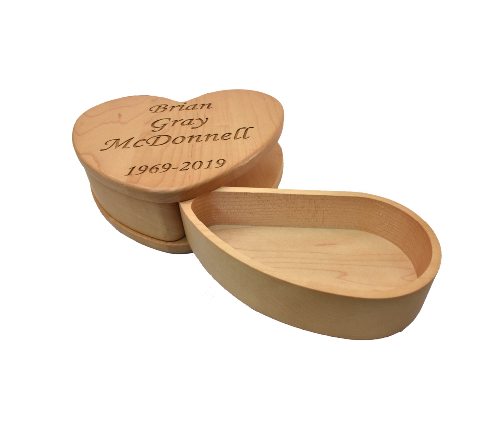 An engraved heart box in our Memorial design is the perfect way to pay tribute to your loved ones. All of the wooden memory boxes from Whitetail Woodcrafters are crafted from solid hardwood and feature 2 hinged compartments to keep your valuables safe and protected. A beautiful laser engraved wooden box that honors the memory of a loved one is a thoughtful gift that is sure to be appreciated.