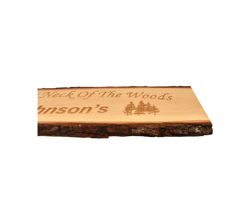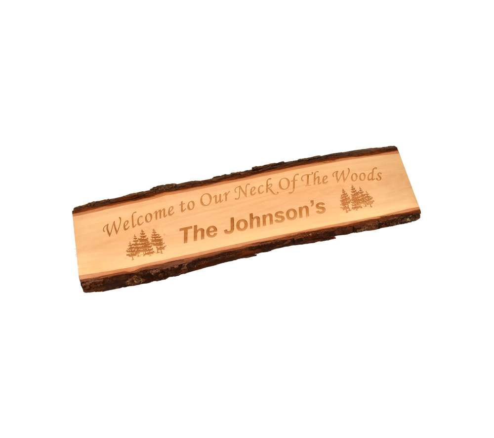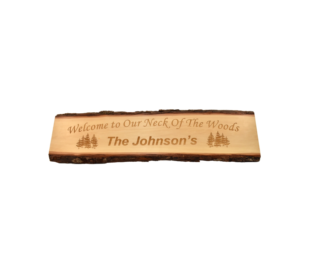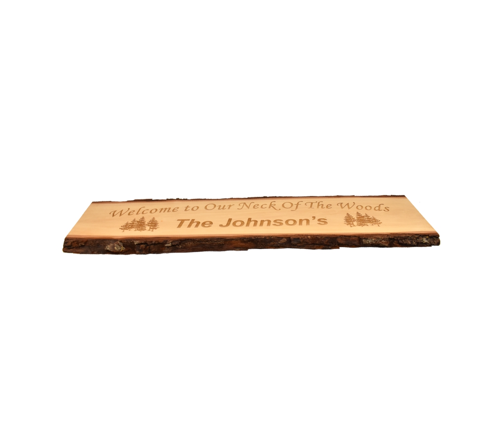 The Neck of the Woods personalized live edge door topper from Whitetail Woodcrafters is a unique way to add some rustic flair to your home or cabin. These rustic signs are handcrafted in our shop from solid basswood for a quality and character you won’t find anywhere else. Whether you give this laser engraved wood sign as a gift or display it in your own cabin, it is sure to impress all who see it.