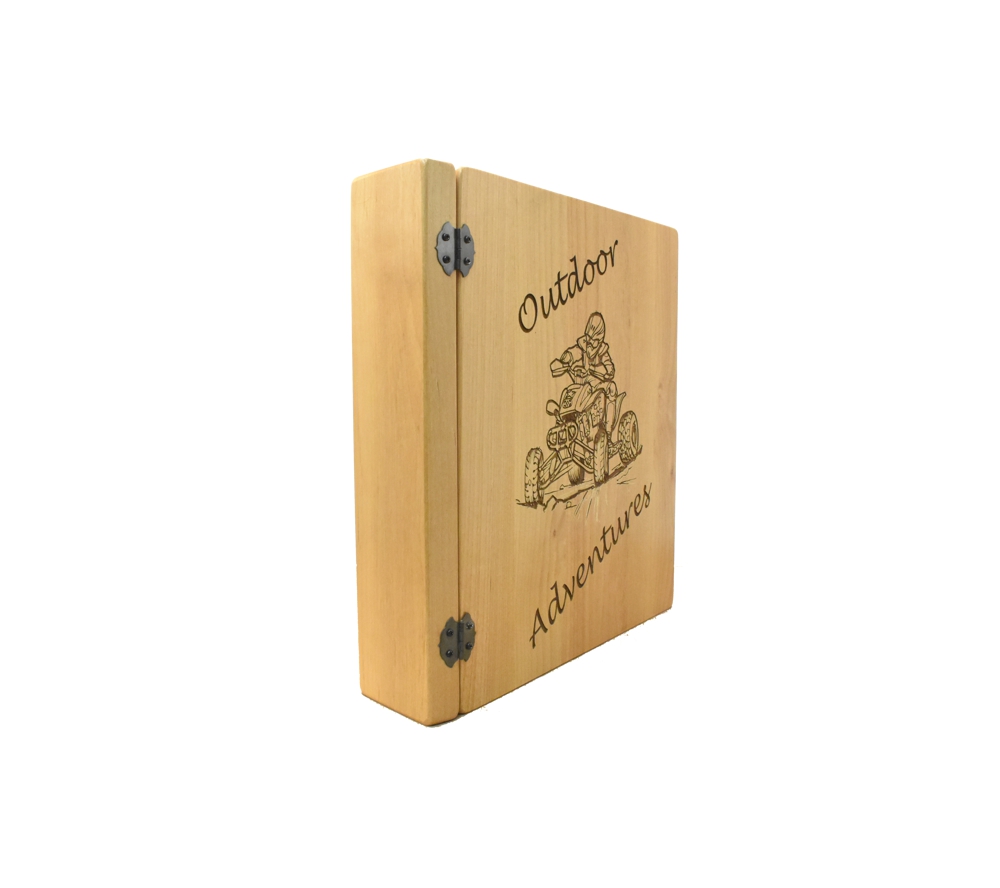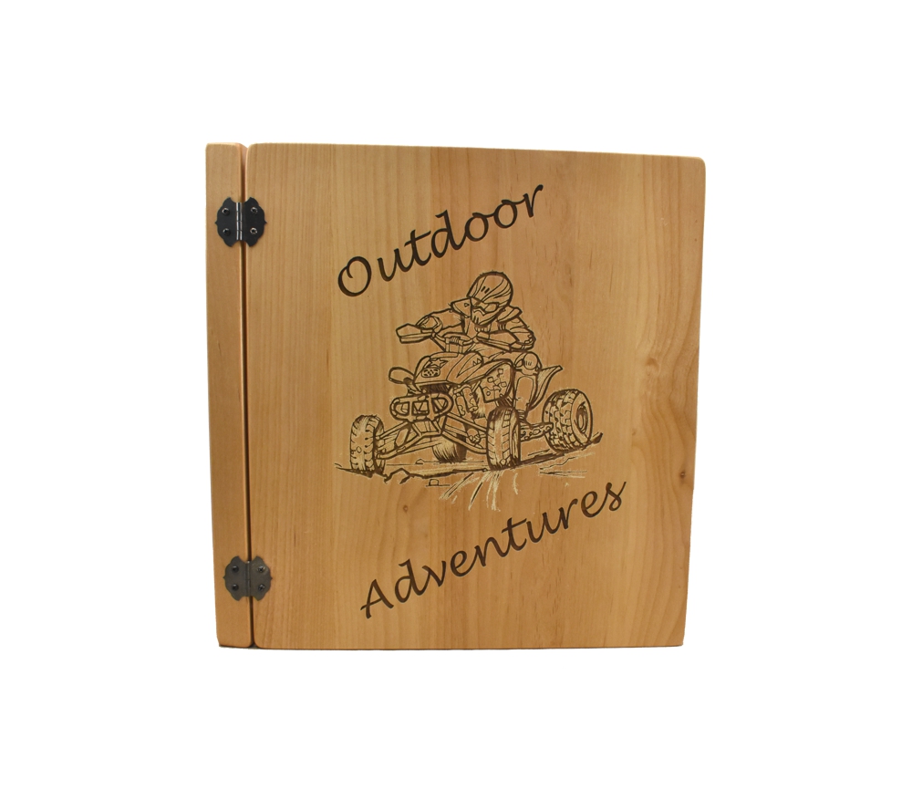 Display all your favorite outdoor photos in a personalized photo album from Whitetail Woodcrafters. Meticulously crafted from premium alder, this custom engraved album will become a family keepsake. All of our 3 ring wooden photo albums feature a standard 3 ring binder insert that can hold any 8.5″ x 11″ page. This allows you to make a custom album, scrapbook, guestbook, or a mixture of these pages for a completely unique display. We have a variety of sizes of page inserts available for purchase with your album as well.