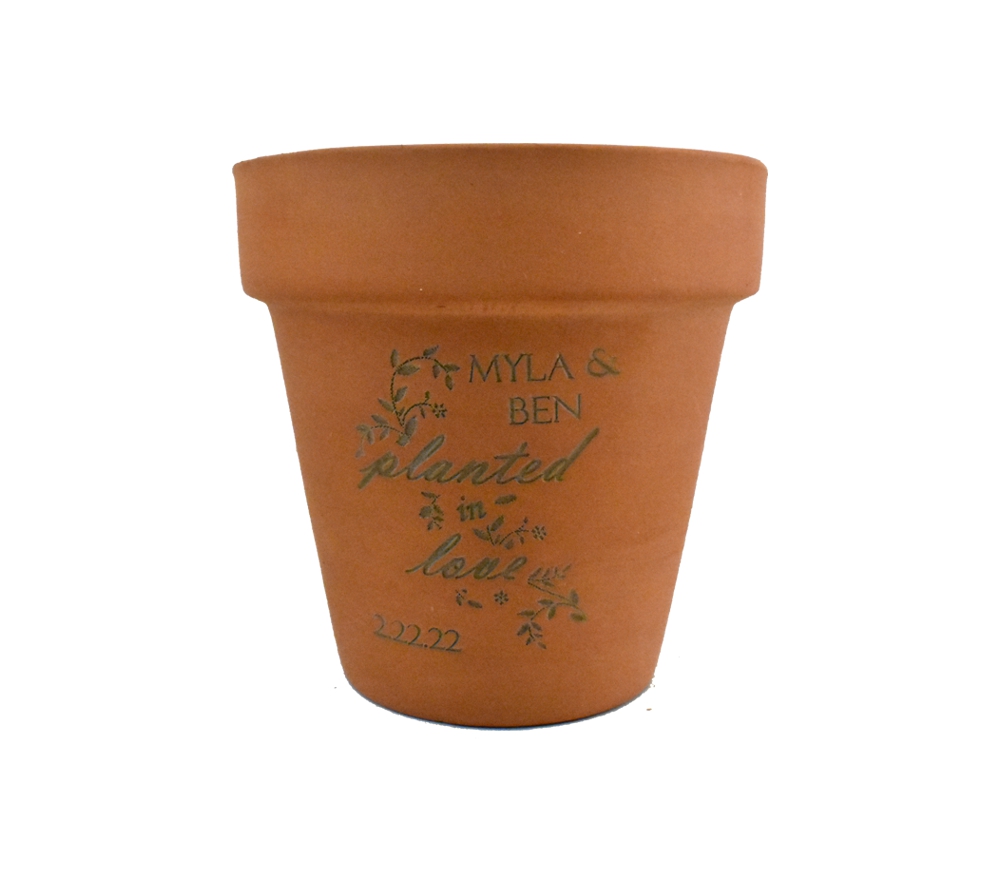 An engraved plant pot wedding favor is the perfect wedding favor for any wedding- from spring to fall with any theme. These engraved plant pot wedding favors from Whitetail Woodcrafters are a beautiful reminder for your guests to remain planted in love. With preset quantity discounts available, purchasing your engraved plant pot wedding favors is an easy item to check off the to-do list before the big day.