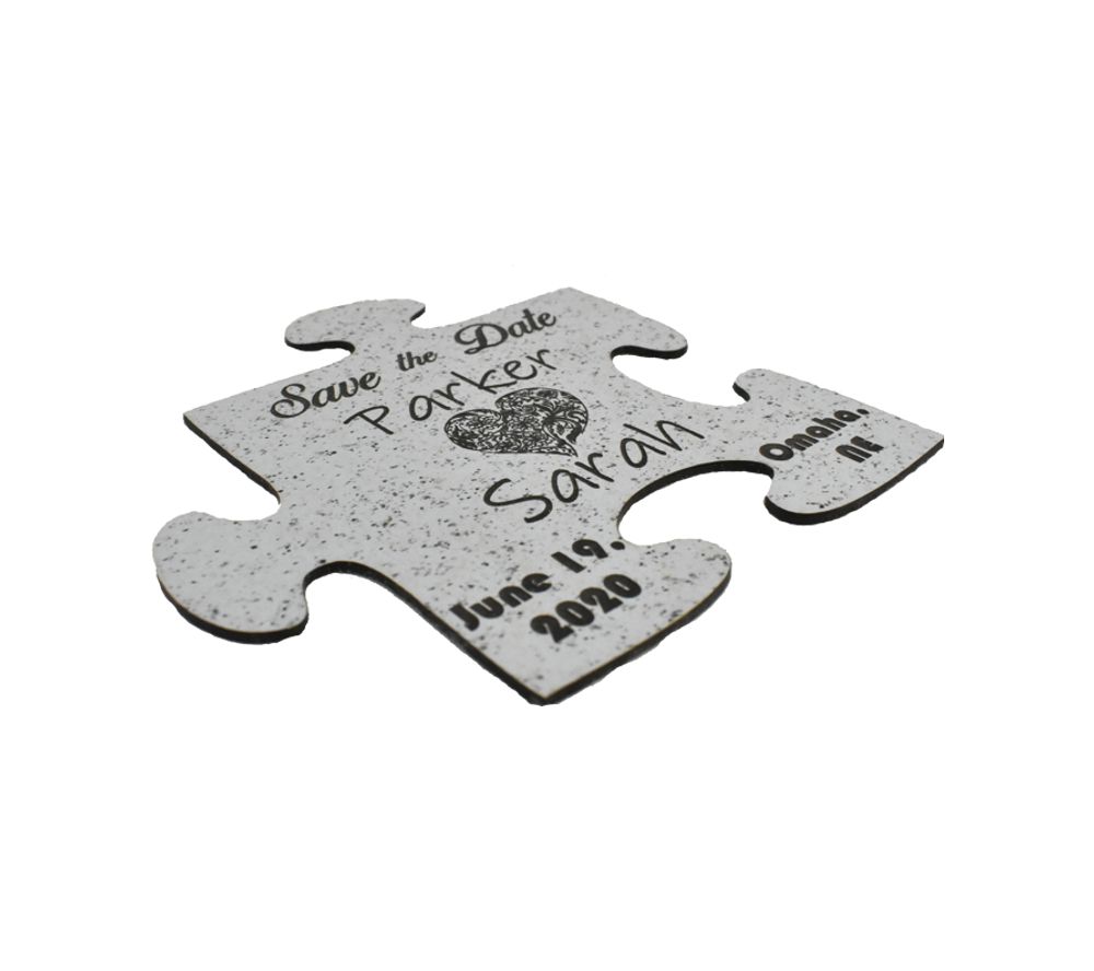 Make your guests feel like an important piece of your wedding day with the puzzle piece unique save the date from Whitetail Woodcrafters. Your guests are an integral part of your wedding day and love story, and a unique save the date is a great way to make sure they are able to attend your upcoming wedding. Our save the dates are created from the same premium acyrlic that is used in signs and awards for a quality you won’t find anywhere else. This unique save the date is available in a variety of colors, patterns, and quantities, so it is easy to find just what you had envisioned for your special day.